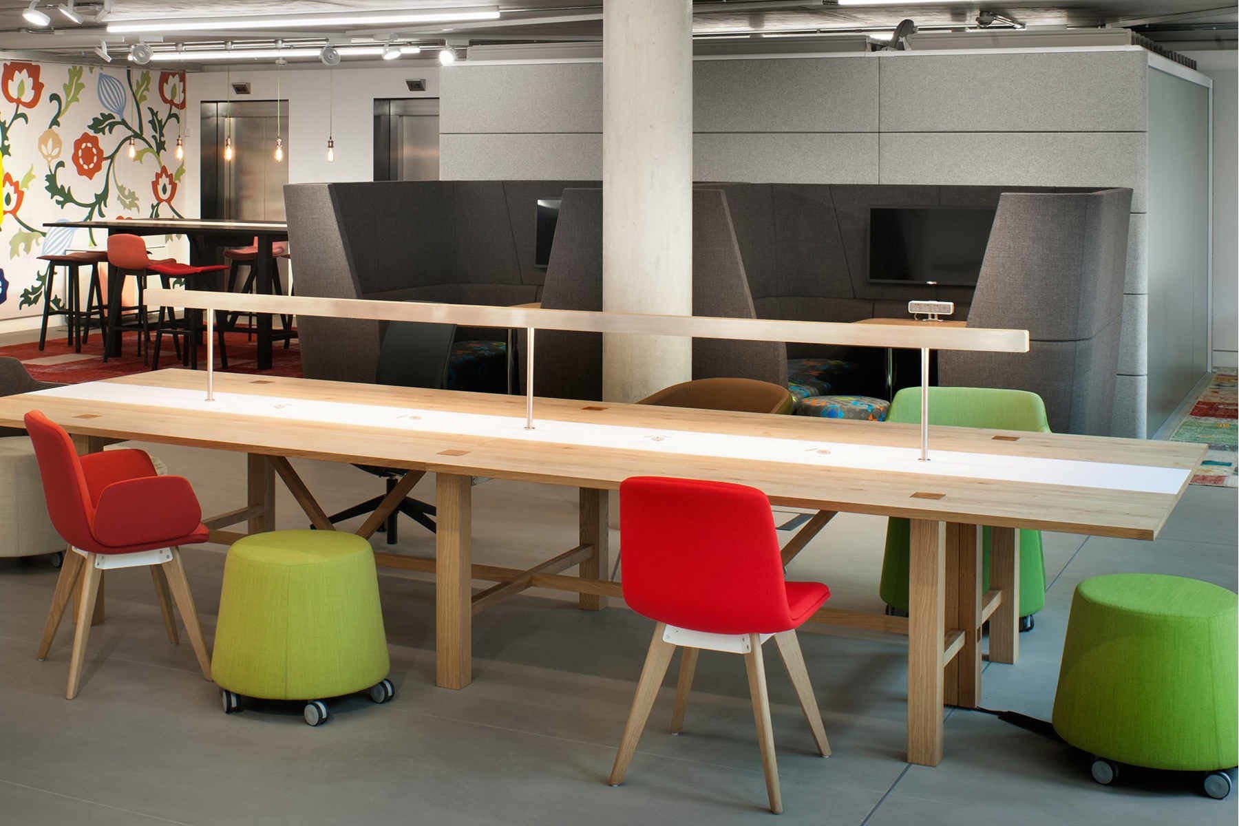 In kantoren staat ontmoeten steeds centraler. Collega's die elkaar op een spontane manier ontmoeten kan leiden tot interessante gesprekken en wellicht oplossingen. Om dit te stimuleren staat er vaak een grote tafel, zoals de BAE van Orangebox in de centrale ruimte om zo aan te schuiven en een praatje te maken. Zeker de statafel leent zich hier uitermate voor.