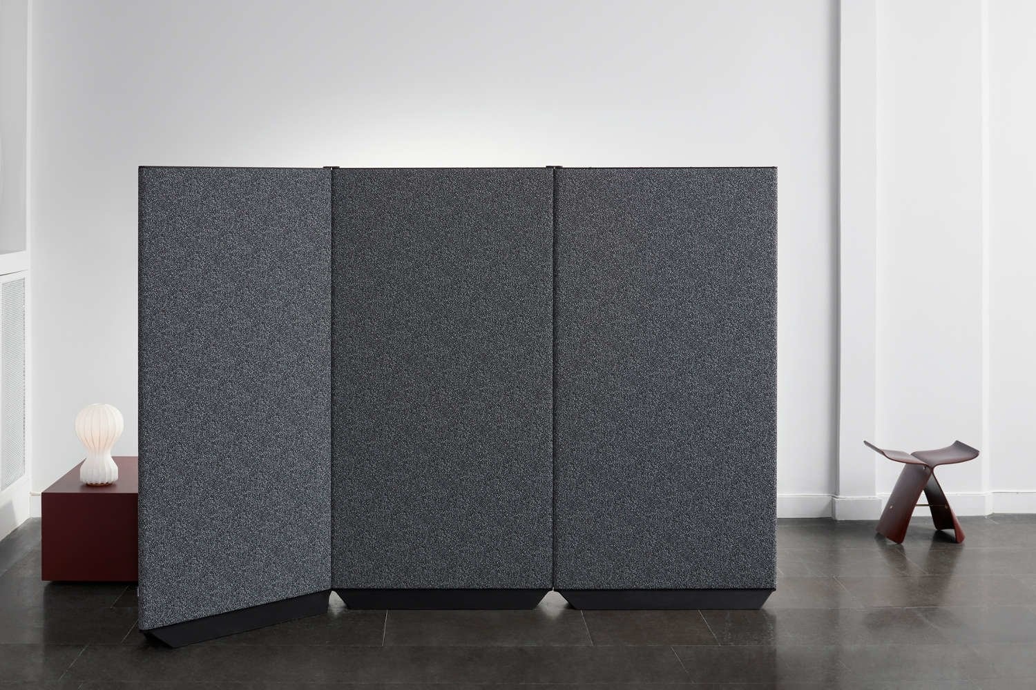 In plaats van op poten staan de schermen op een basis, waardoor ze naar wens kunnen worden gecombineerd met elkaar.