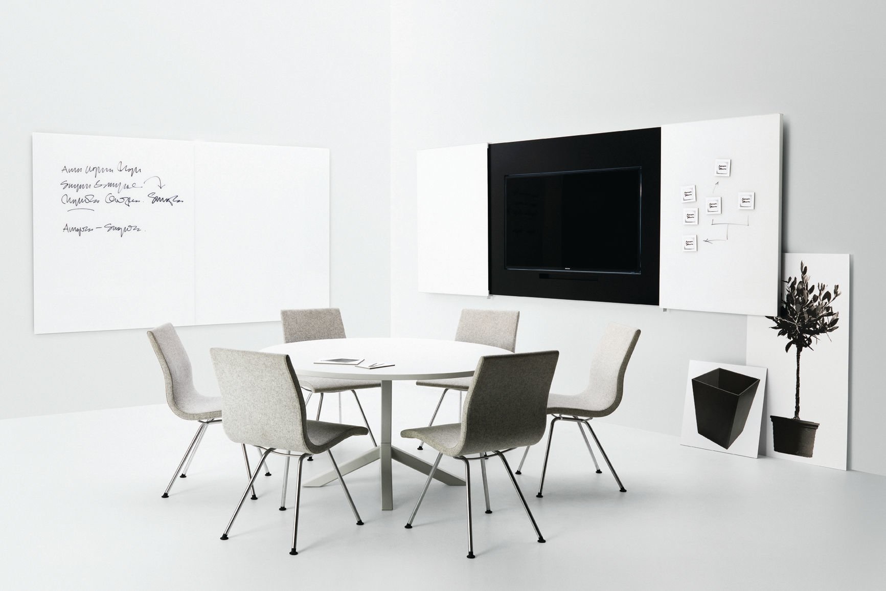 Abstracta Messenger conferentiekast is voorzien van schuifdeuren in de kleur zwart, wit of een glazen deurschuifdeur. De glazenschuifdeur is een lust voor het oog en kan gebruikt worden als schrijfbord. Het elegante en compacte ontwerp maken de Abstracta Messenger een veelzijdige kast. Het SilverPro™ schrijf/projectievlak is 72inch in diagonaal en heeft een 4:3 verhouding voor perfecte projecties voor elke projector. Whiteboard pennen kunnen gebruikt worden. De kast heeft aan de zijde ruimte nodig omdat de glazen deuren opzij geschoven worden.De Abstracta Messenger kan nu ook geleverd worden met een plasma of LCD scherm van maximaal 75inch. De messenger is er ook speciaal voor kleinere ruimtes met een afmeting va 1250 mm x 922 mm.