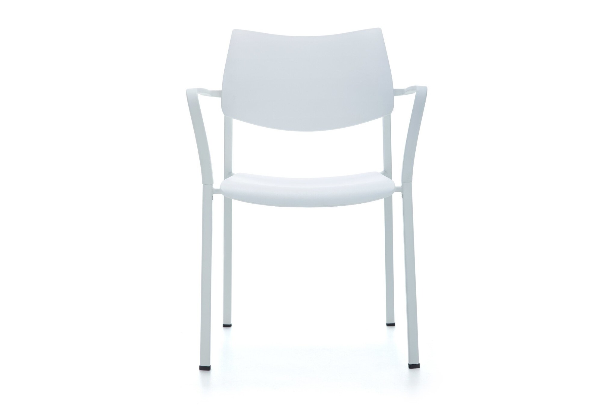 Stapelbare stoel met of zonder armleuningen. Het frame is gemaakt van gepoedercoat staal. Een optie is om deze verchroomd te maken. De zitting en rug zijn leverbaar in polypropyleen. De armleuningen zijn gemaakt van polyamide of gepoedercoated aluminium of gepolijst.