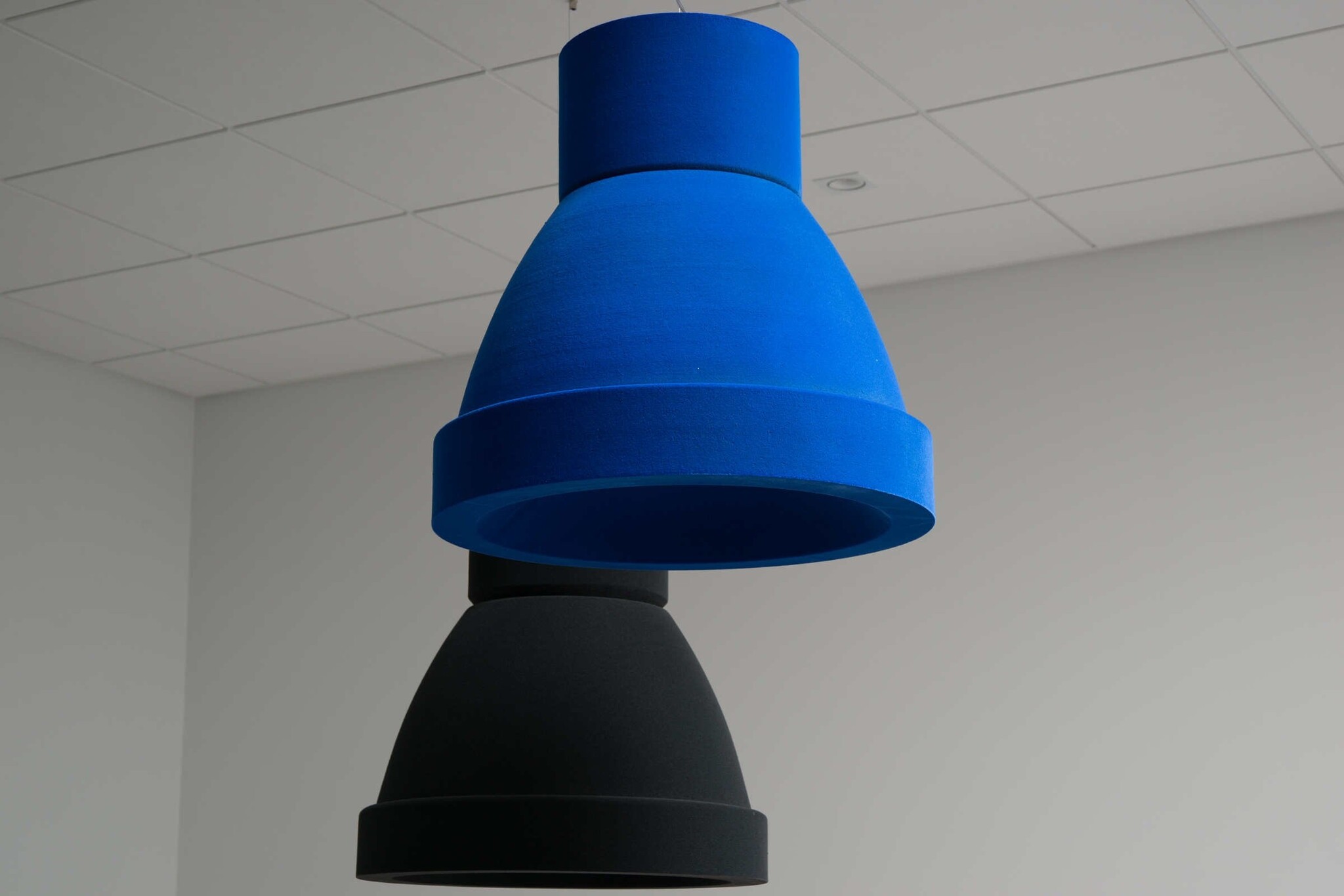 De Akomo Industry akoestische lamp is leverbaar in de 12 kleuren uit de Acoshape+ collectie.