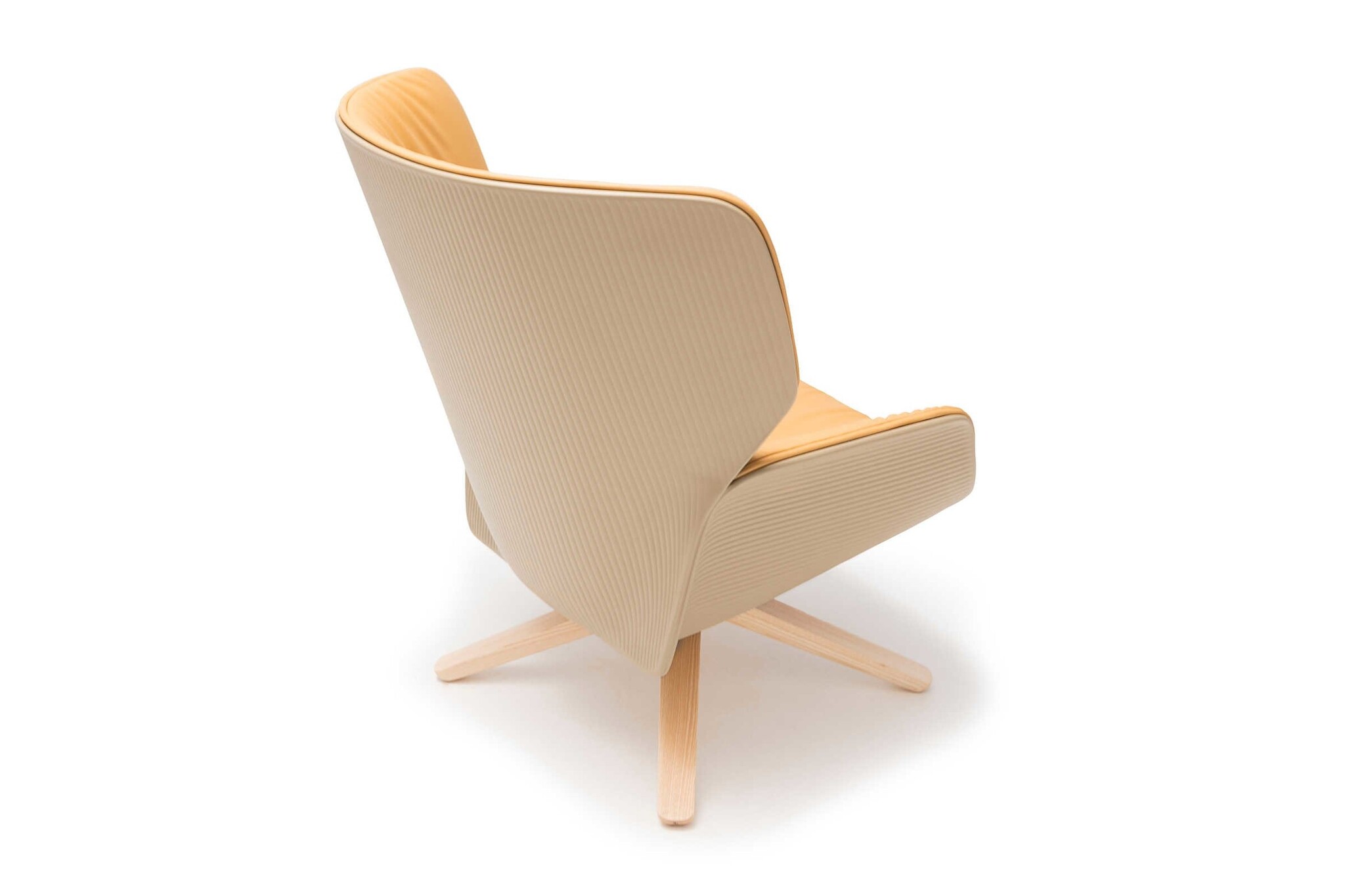 BU2743: Fauteuil met een centrale draaivoet van massief essenhout.