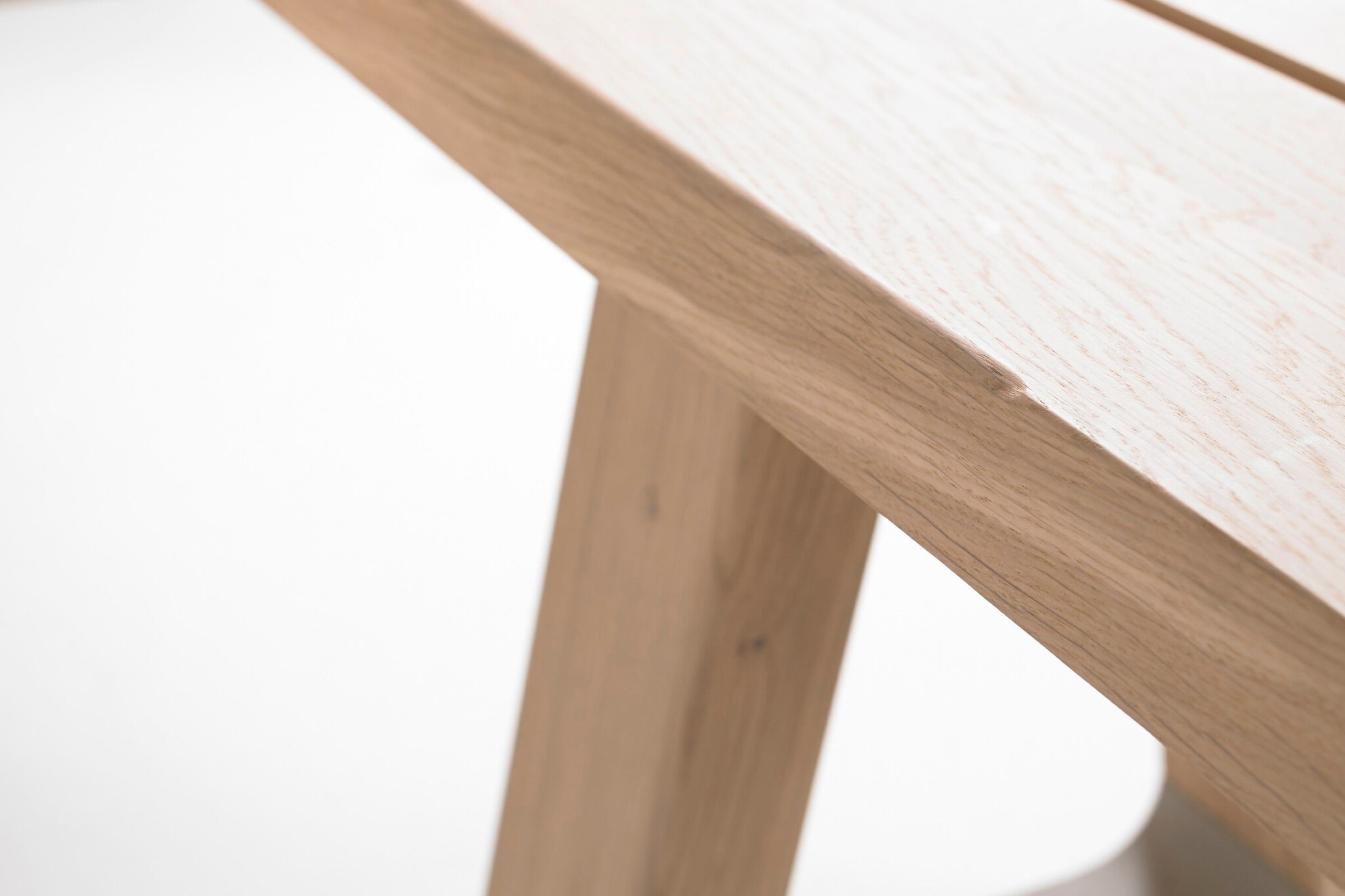 Deze stevige Arco Base Bench kunt u natuurlijk ook los gebruiken, zonder de tafel. Hij doet ons een beetje denken aan de banken die je in de gymzalen tegenkwam.