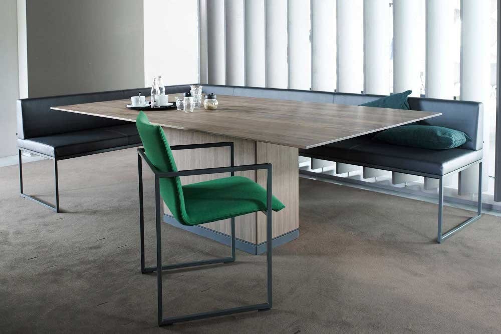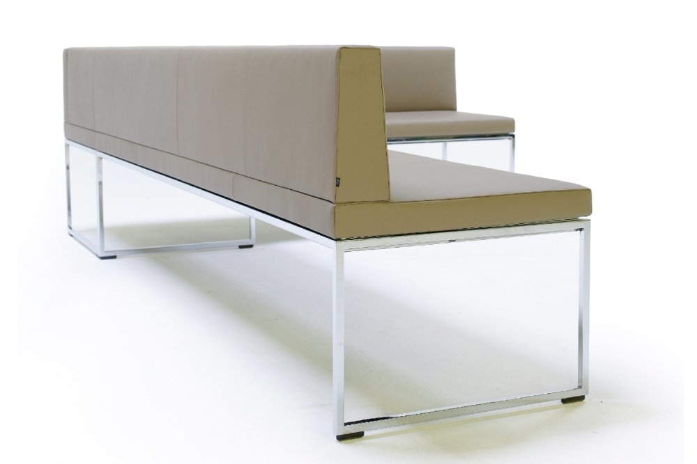 Arco Frame Bench is een licht ogende bank, die solitair of in een hoekopstelling geplaatst kan worden. De Frame Bench is leverbaar met of zonder rugleuning en is te bekleden met stof en leder. Het sledeframe is uitgevoerd in epoxy lak, parel- of hoogglanschroom. Optioneel kan er nog gekozen worden voor een zitkussen ook bekleedt in het stof of leder.