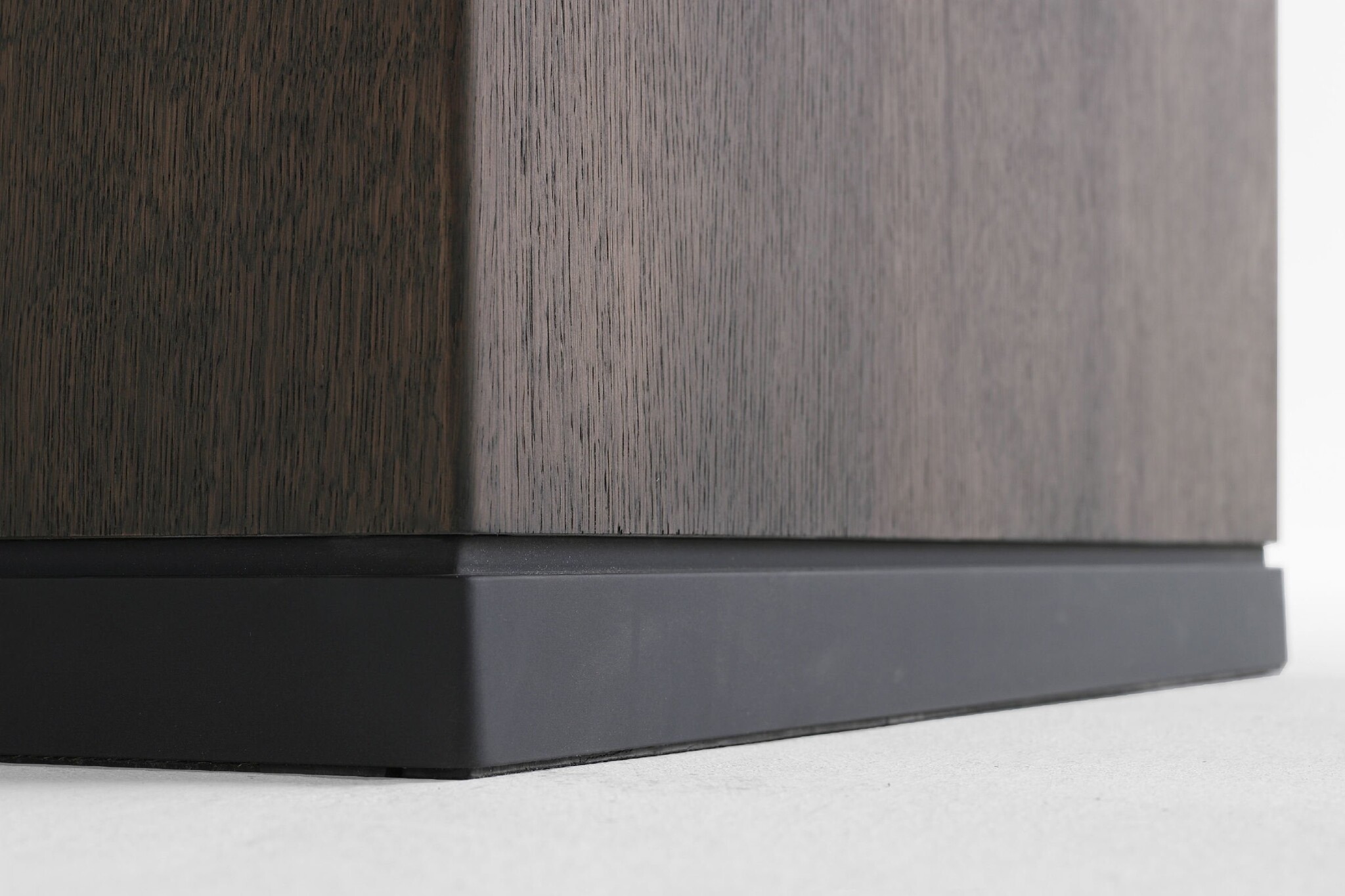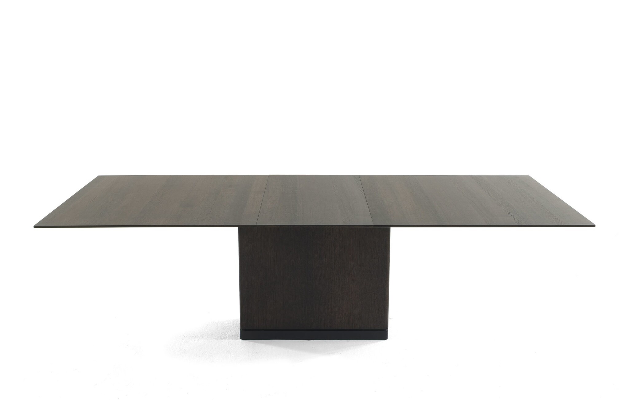 Materialen Arco Spazio tafels: Blad: eiken of noten (massief, fineer), uitschuifblad: eiken of noten (fineer, duramas), kolom: eiken of noten (fineer), kleurlak op mdf en voet: kleurlak op beton.