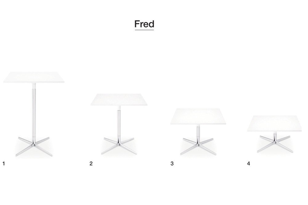 De Arper Fred is een collectie van compacte maar veelzijdige tafels. Deze tafels zijn uitermate geschikt voor in de horeca, maar ook als in kleine overlegruimtes voor bijvoorbeeld een overleg, zoals een bilateraal met je collega. De lage tafels zijn als bijzettafel of salontafel in een entree of ontvangstruimte toe te passen. Doordat er verschillende afmetingen en vormen zijn kunt u deze tafels mooi in uw inrichtingsconcept combineren, denk bijvoorbeeld aan een zithoek met enkele lage tafels, een eetgedeelte met de tafels van 74 cm hoog en de hoge tafels om aan te borrelen. Kortom: u kunt alle kanten op in dezelfde stijl. De tafels zijn uitzonderlijk robuust en ook buiten te gebruiken.