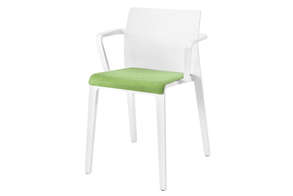 De stoel is gemaakt van kunststof (polypropyleen) en kan ook deels worden gestoffeerd.