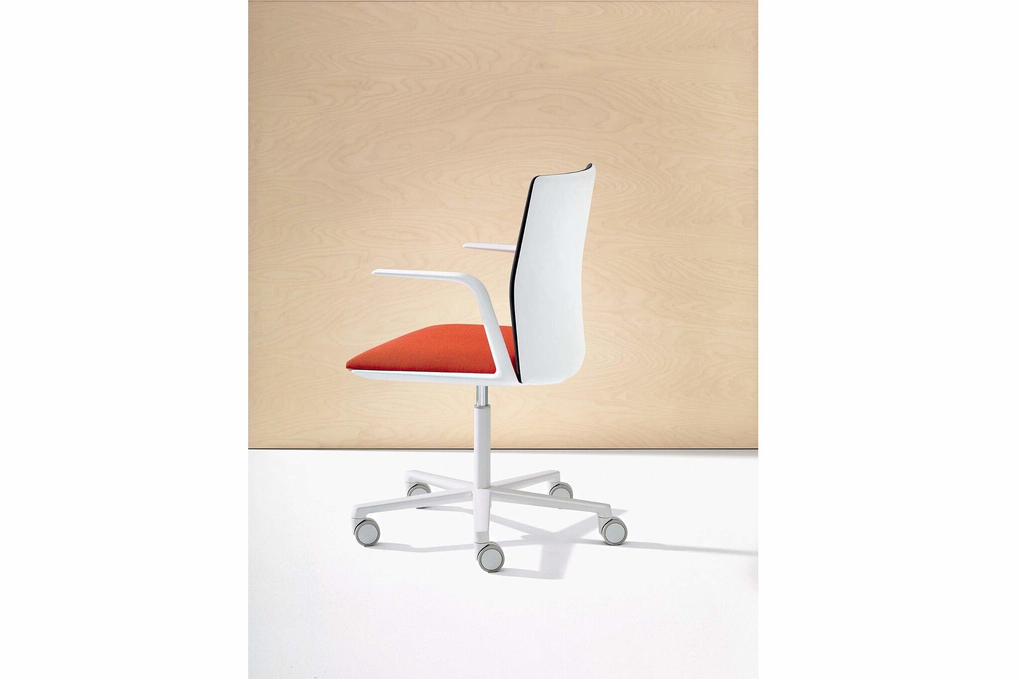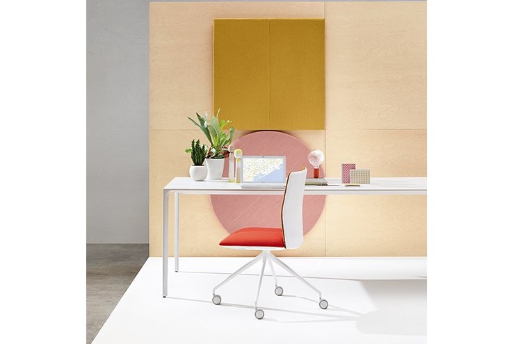 Arper's eerste bureaustoelen serie met eenvoudige in- en verstelmogelijkheden. Het ontwerp is licht en minimaal, de stoel zitting en rugleuning zijn instelbaar voor optimaal comfort. Kinesit is voorzien van een ingebouwd synchroonmechanisme, discreet verborgen onder de stoel en een gasveer om de juiste zithoogte in te stellen. De bureaustoel is voorzien van een onzichtbare, verstelbare lendensteun, opgeborgen in dunne frame van de rugleuning om extra flexibiliteit en comfort te geven. Kinesit Chair is verkrijgbaar in drie hoogtes rugleuning en een reeks van onderstellen.