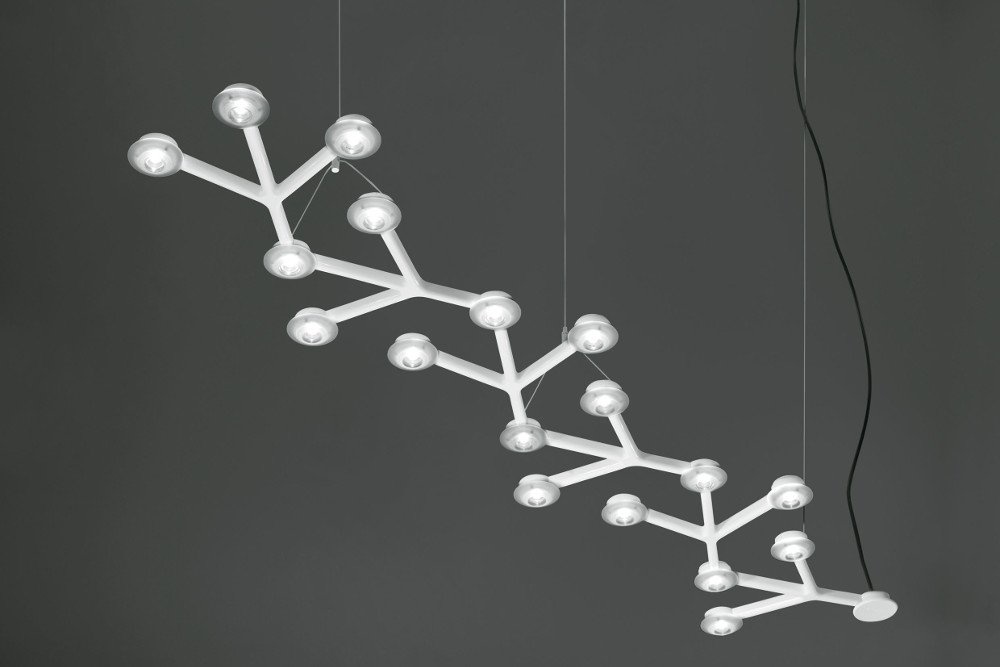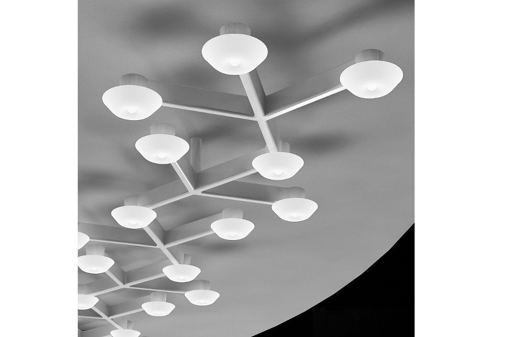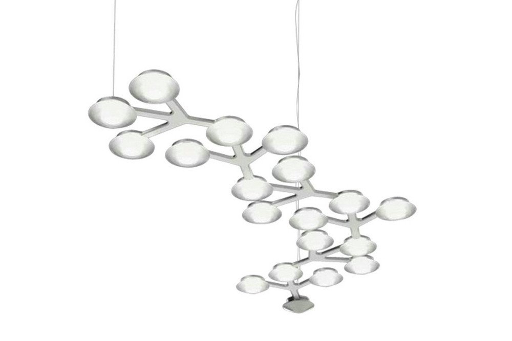 Een hanglamp of plafondlamp met unieke vormen in wit gelakt aluminium. Led Net Line is voorzien van 18 led verlichtingen van 41 Watt per stuk. Deze lamp is tevens te verkrijgen in een andere variant: Led Net Circle.