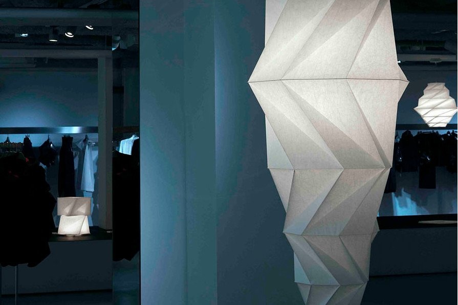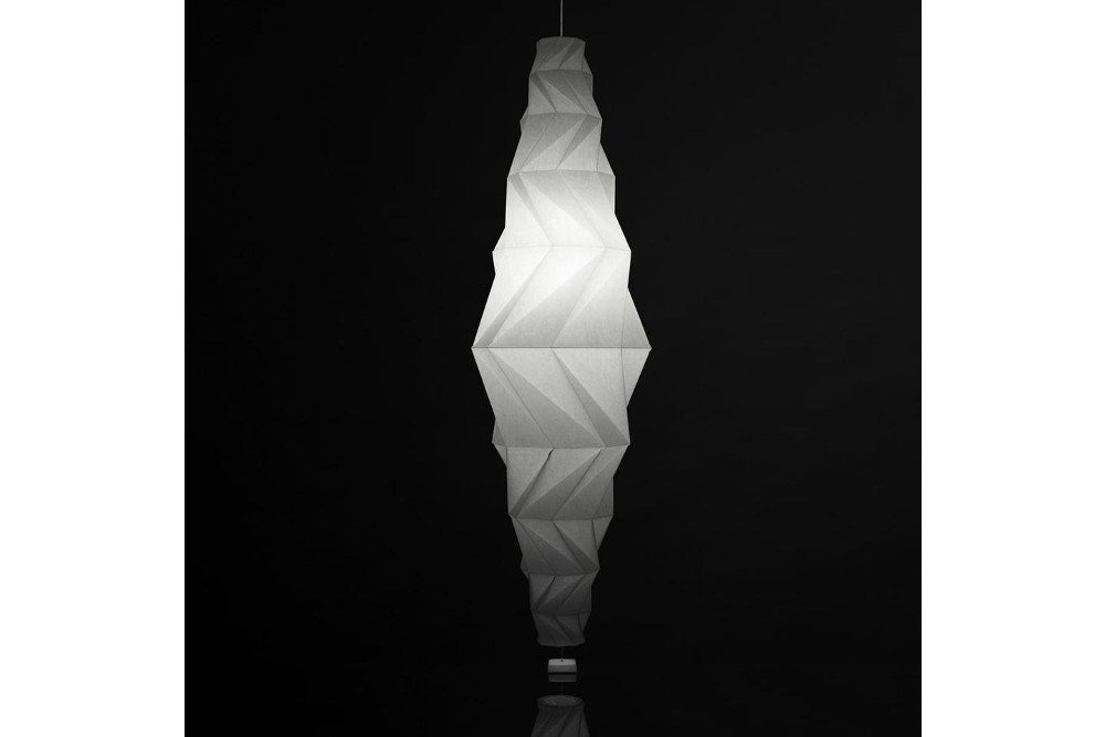 Deze lamp behoort tot de IN-EI collectie van Issey Miyake en Reality Lab. Minomushi is leverbaar als hanglamp en vloerlamp. Deze lamp is geïnspireerd op origami papier en dit is duidelijk terug te zien in de vormen van de lamp.