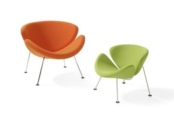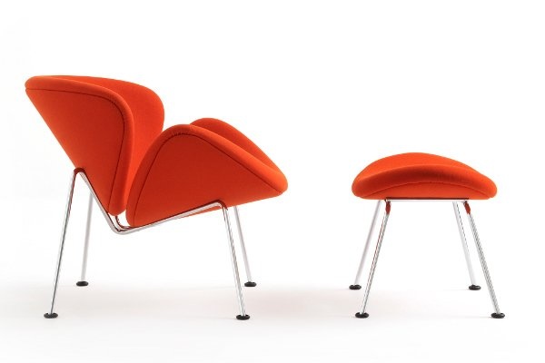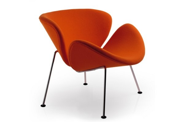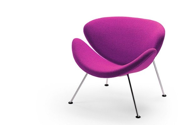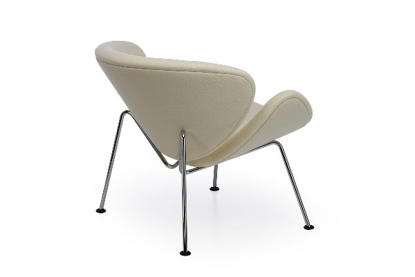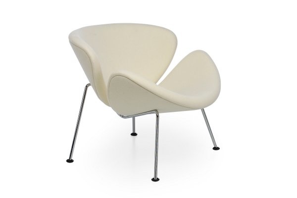 De Orange Slice Chair van Artifort is een bekend en klassiek ontwerp uit 1960 van de alom geprezen Franse ontwerper Pierre Paulin. De fauteuil valt op door haar unieke en speelse vormgeving. Het design bestaat uit twee volkomen identieke schelpen van geperst beukenhout, afgedekt met vormschuim. De naam van het ontwerp is een verwijzing naar de schelpen; de slices. Bijzonder is het dat de Orange Slice fauteuil vanuit verschillende invalshoeken steeds weer van vorm lijkt te veranderen. Onder de zitkuip zit een verchroomd of gepoedercoat metalen buisonderstel. De Artifort Orange Slice fauteuil is leverbaar in twee uitvoeringen, een laag model met een zithoogte van 41 cm en een hoger model met een zithoogte van 48 cm. De stoffering is volledig op wens aan te passen, passend bij ieder interieurconcept. Er is een ruim keuze aan stoffen die voldoen aan de hoogste en zwaarste projectkwaliteit van merken als Kvadrat en De Ploeg. Ook is bekleding in leder een keuzemogelijkheid. Kenmerken Artifort Orange Slice designfauteuil