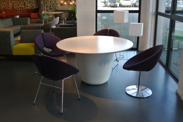 Het tafelblad is leverbaar glad gelakt, in laminaat of in fineer. Artifort Presso heeft als basis een conische kolom van kunststof, die het strakke ronde tafelblad draagt. De poot kan gelakt of gestoffeerd geleverd worden. Artifort Presso een interessant object voor uw woon- of werkomgeving.