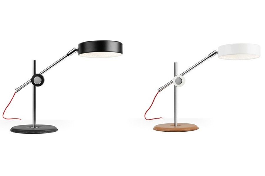 Kleuren: wit RAL9016 met lampenvoet in naturel gekleurd leder