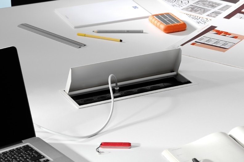 De stekkerdoos neemt haast geen ruimte in op uw bureau en daarmee blijft er genoeg ruimte over voor andere spullen, zoals uw laptop. Bovendien ziet het kabelmanagement er strak en verzorgd uit op uw bureau of tafel en geeft het een rustige uitstraling. Ook is de stekkerdoos makkelijk te installeren. De Bachmann Coni Cover is leverbaar in drie kleuren: zilvergrijs, wit en zwart.