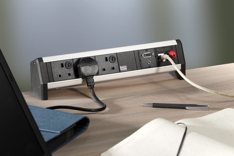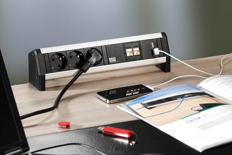 Bachmann Desk 1 kabelmanagement zijn centrale componenten van video, audio en netwerkverbindingen. De constructie biedt u eenvoudig meer flexibiliteit op uw werkplek. Bachmann Desk 1 specificaties: