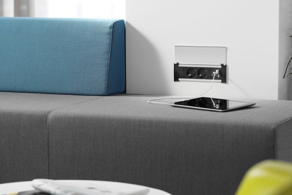 Bachmann Kapsa kabelmanagement geeft flexibiliteit rondom de werkplek, bijvoorbeeld in een vergaderruimte. De Kapsa zit geïntegreerd in de muur. Wanneer er stroom nodig is kan de deksel eenvoudig open geklapt worden. Specificaties Bachmann Kapsa