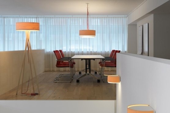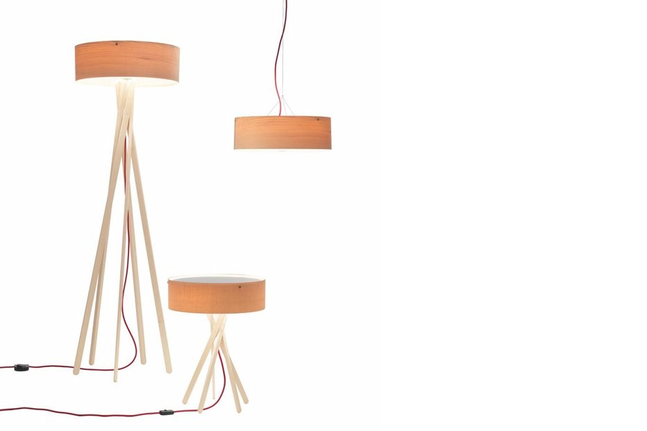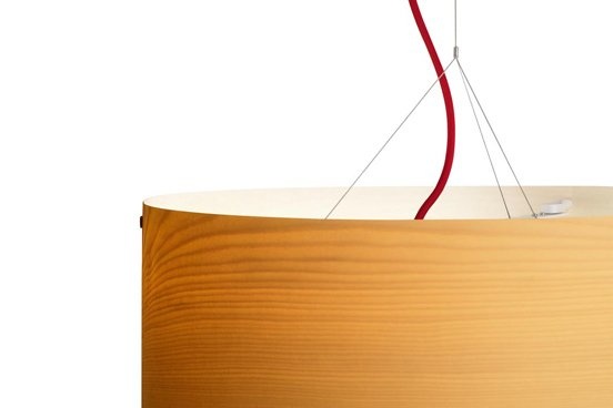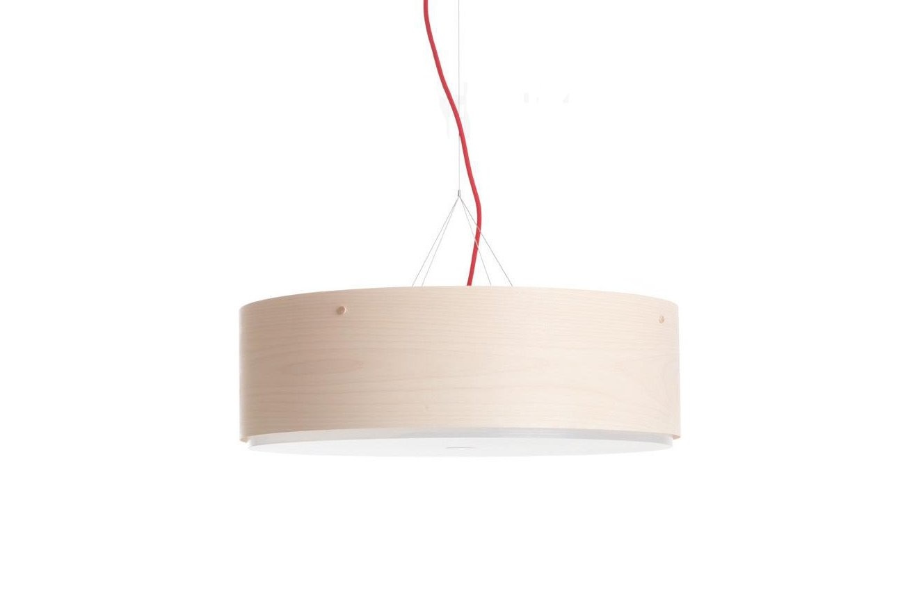 Belux Arba is een serie lampen die bestaat uit een plafondlamp, vloerlamp, tafellamp en wandlamp. De lampenkap is gemaakt van esdoorn houtfineer, heeft een kunststof diffusor en is voorzien van een rode textiele kabel. Arba plafondlamp