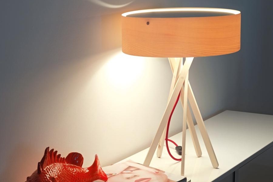 De tafellamp uitvoering van Arba heeft net als de vloerlamp vijf natuurlijk gedroogde, afgekante poten die een hoge stabiliteit garanderen. Optioneel is de lamp dimbaar.