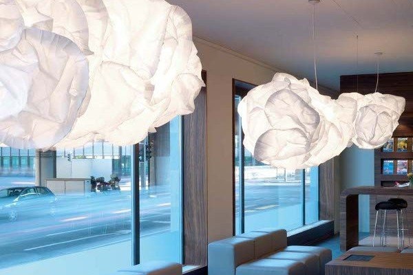 Een lichtgevende wolk ontworpen door Frank Gehry, een echte blikvanger. Cloud is voorzien van een scheurvaste, duurzame en ontvlambare schaal elementen gemaakt van Polyester vlies. Dit materiaal is vervormbaar, brandveilig en heeft akoestische eigenschappen. Cloud lamp is speciaal ontworpen voor de spaarlamp. Dankzij het polyestervlies geeft de lamp energiezuinig, sfeervol warm licht.