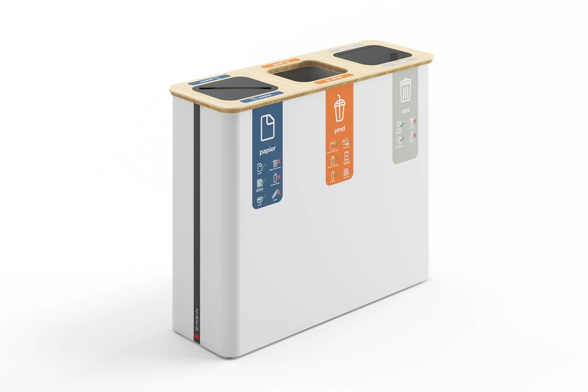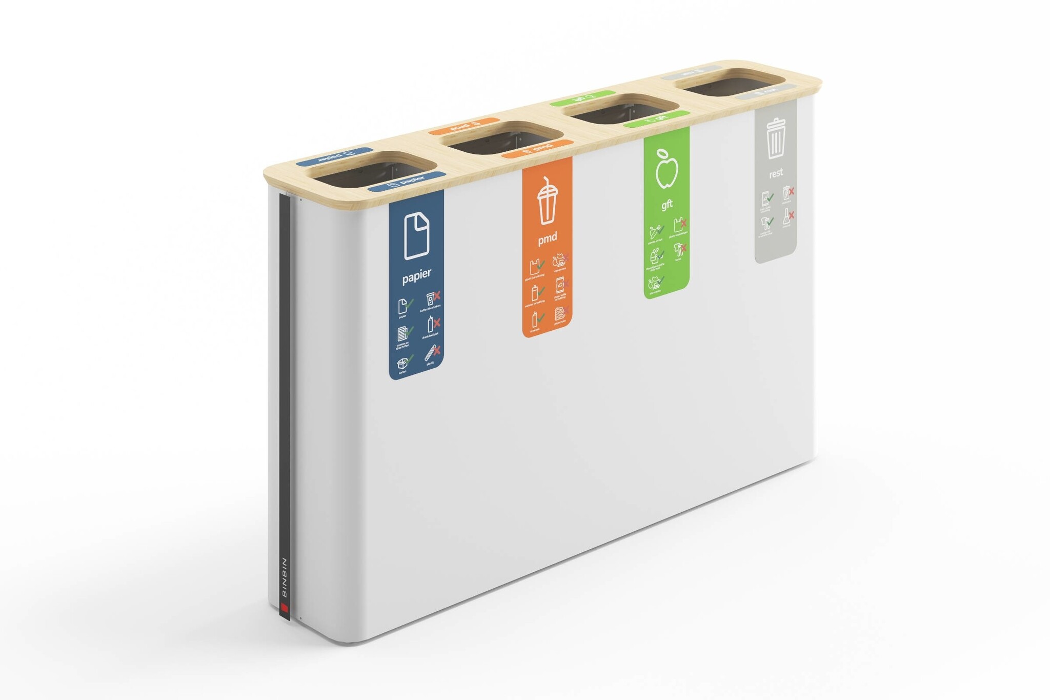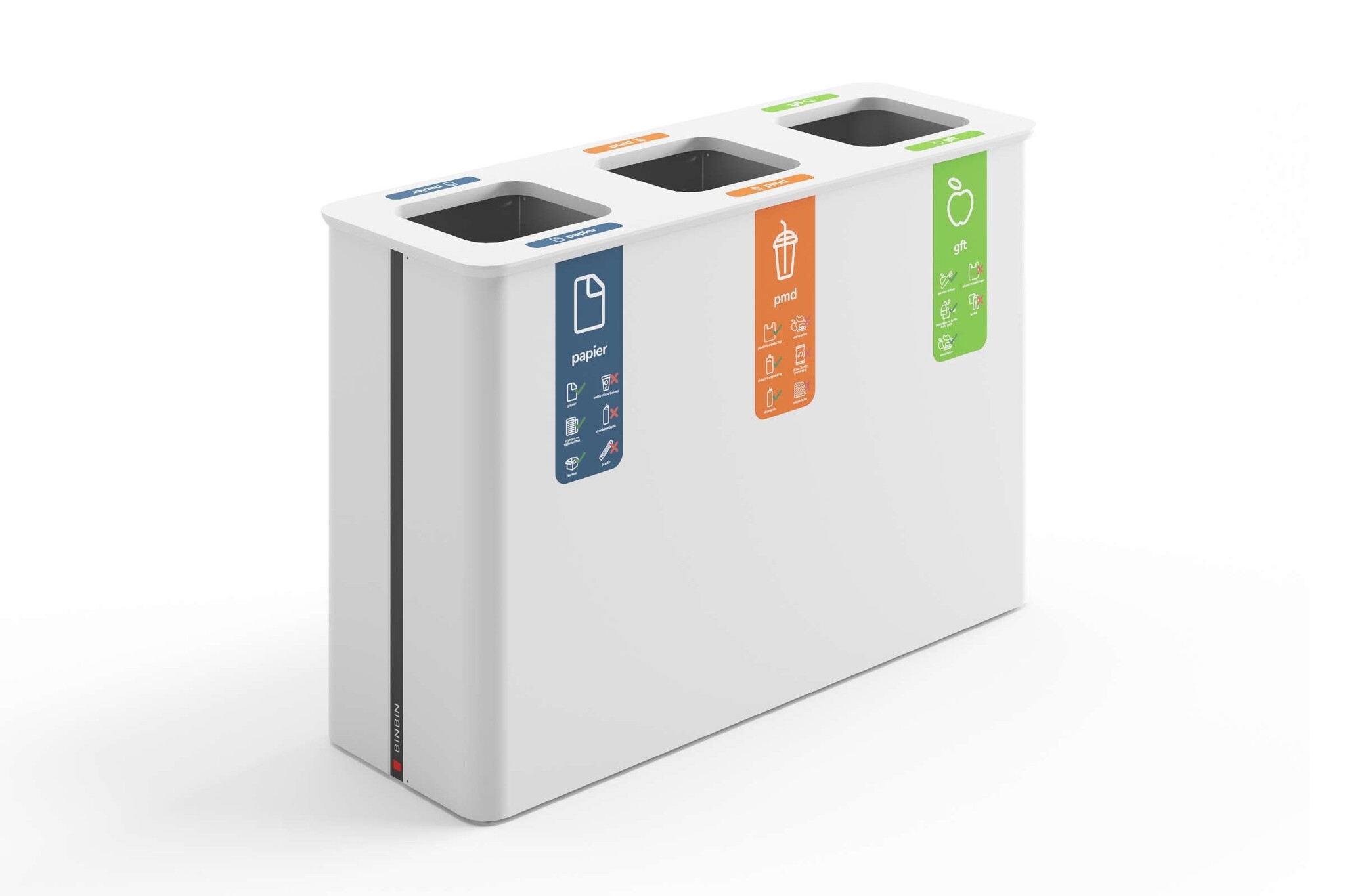 De BinBin Globular is een afvalbak die het mogelijk maakt om eenvoudig verschillende afvalstromen te scheiden. Denk aan papier, plastic, gft, glas of restafval. De bakken zijn leverbaar met compartimenten van 30, 45, 60 of 90 liter en in varianten van 1 tot 4 bakken. Deze afvalbakken van BinBin zijn goed toe te passen in openbare ruimtes, zoals de horeca, musea, vliegvelden, theaters of kantoren. Ook is het mogelijk om bijvoorbeeld uw logo of andere beeldmerken te plaatsen, zodat de BinBin Globular in uw huisstijl past. Kenmerken van de BinBin Globular