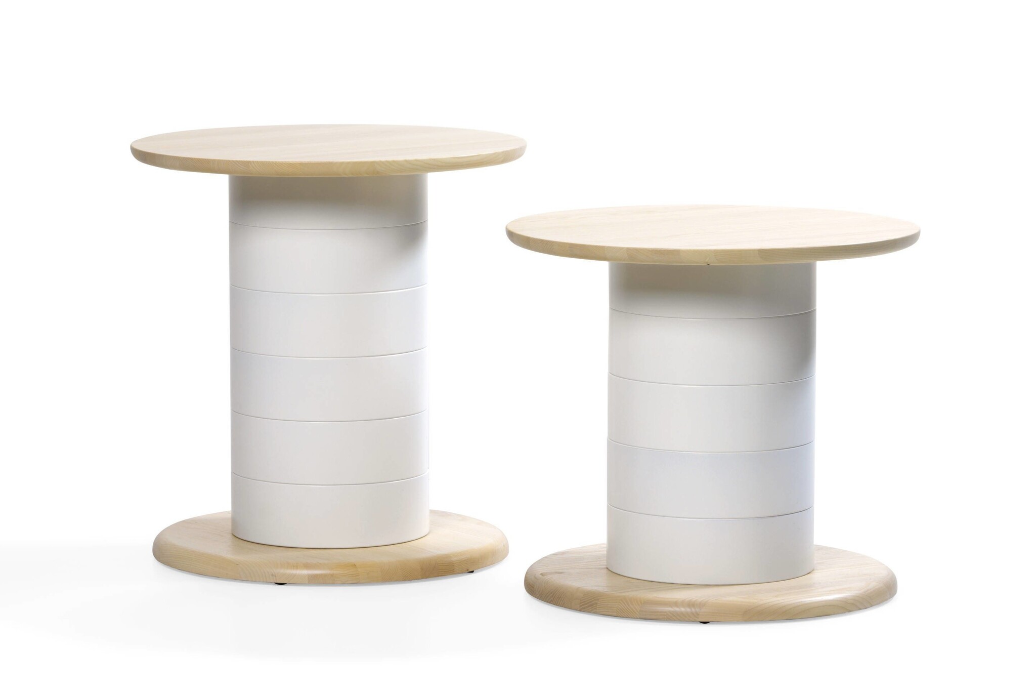 Een tafel leverbaar in diverse maatvoeringen en kleuren. Zo is de Babel toepasbaar als salontafel, kantinetafel of hoge sta-tafel. Deze tafel is voorzien van ringen gemaakt van berkenhout, gelakt in verschillende NSC kleuren. Elke ring is 95 mm hoog. Babel is dankzij de unieke design en vele kleuren geschikt voor alle soorten interieurs.