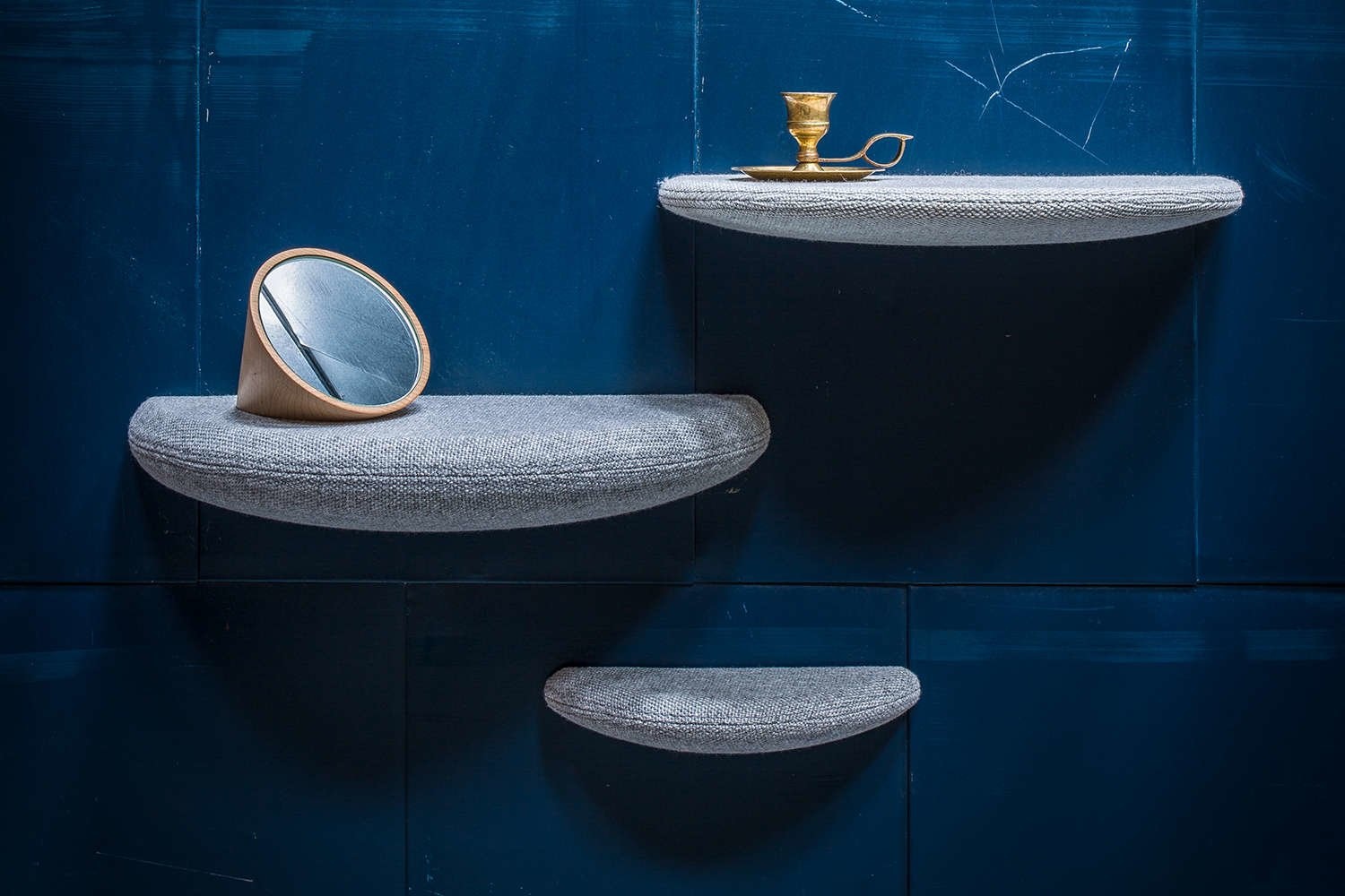 De Stones van Bogaerts Label is een ontwerp van designer Philip Bogaerts. De Stones maakt het mogelijk om op een mooie en visueel aantrekkelijke manier producten op een muur te presenteren en tentoon te stellen. Het verschaft de gelegenheid om van elke willekeurige muur een designobject te maken, een blikvanger in het interieur. Of dat nou in een museum, kantoor, restaurant winkel of welke andere openbare ruimte ook.De Bogaerts Label Stones bestaat uit een set van 3 op stenen gelijkende muurobjecten, elk van een ander formaat. De elementen zijn vervaardigd van solide hout en met stof bekleed. Standaard leverbaar in natuurlijke grijs/bruin tinten. Op aanvraag is het ook mogelijk om de Stones in elke gewenste kleur te maken. Bevestiging van de elementen, op elke muur, is eenvoudig en simpel met behulp van 2 schroeven.
