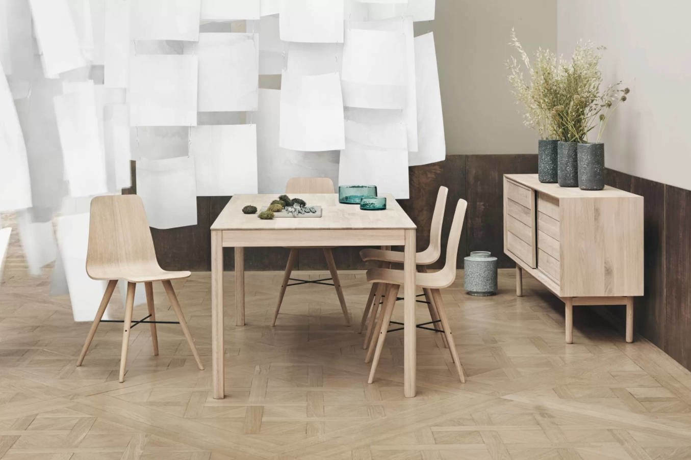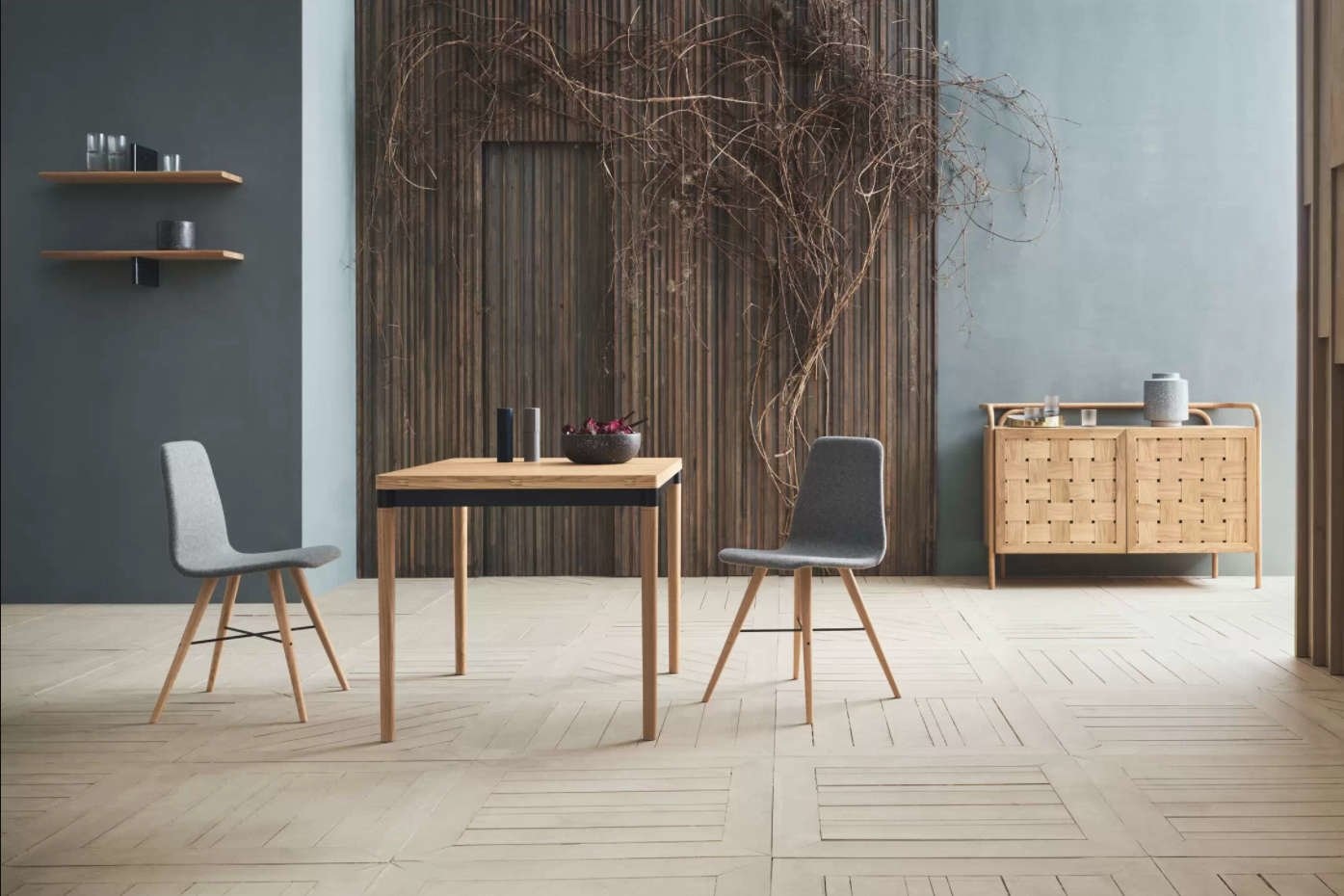 Onderstel in: zwartgebeitst geolied eiken, geolied eiken, geolied walnoot, donker geolied eiken of witgepigmenteerd geolied eiken