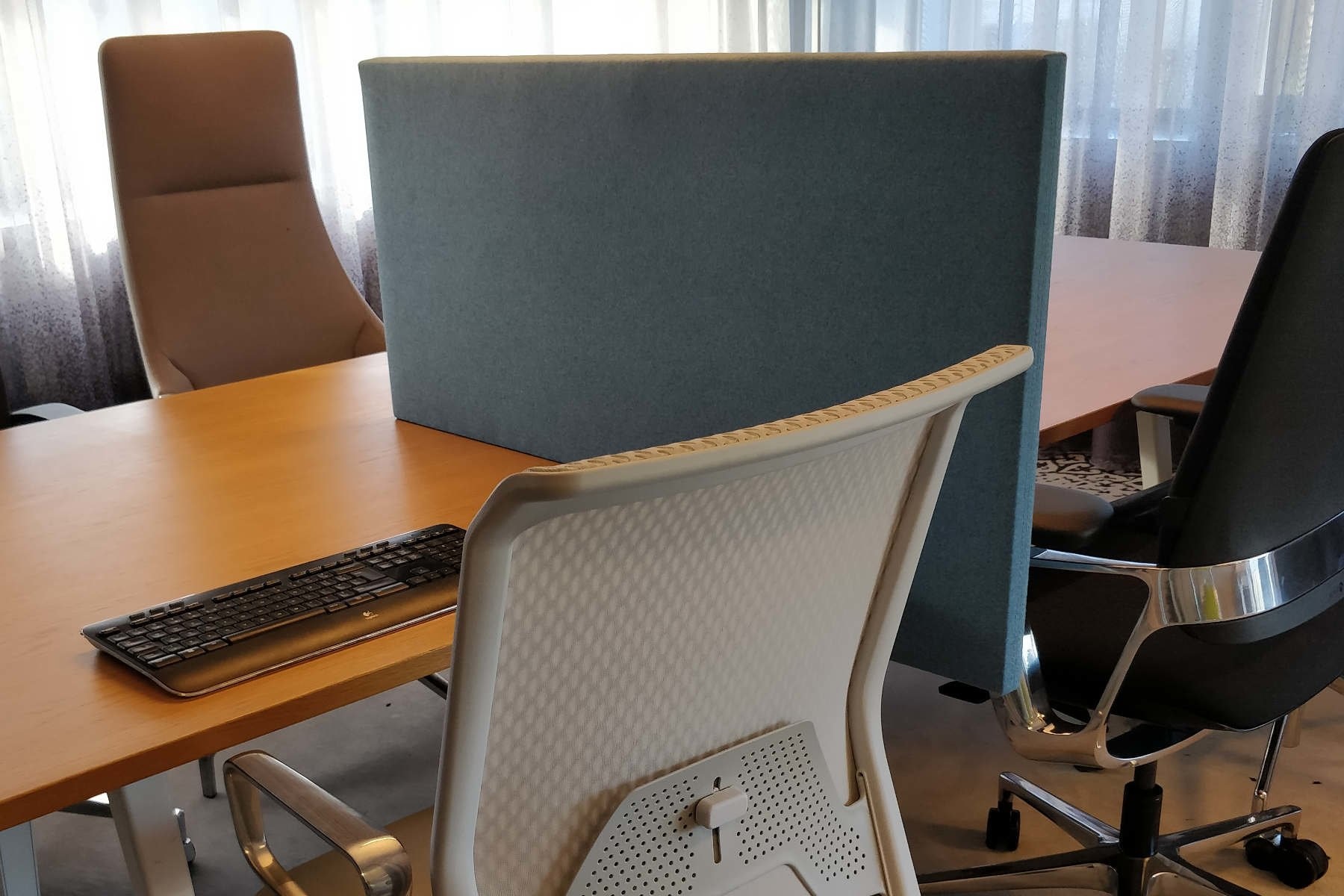 De scheidingswand heeft akoestische eigenschappen, hierdoor wordt geluid gedempt en kun je ongestoord werken.