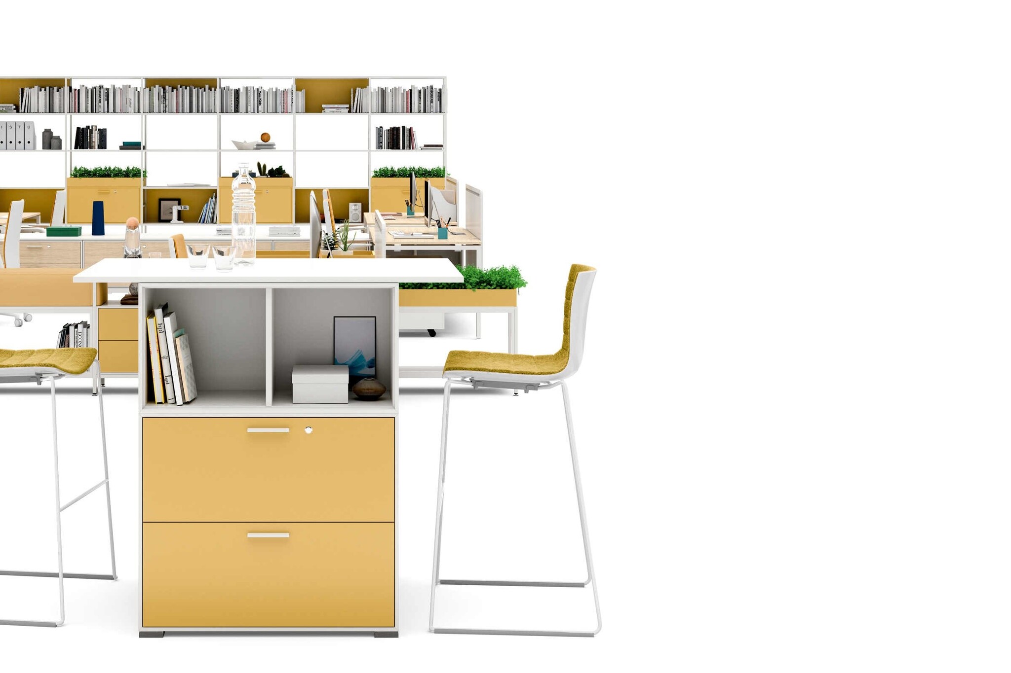 De Bralco Concerto is een modulair kastensysteem met tal van mogelijkheden. Naast opbergen van kantoorartikelen, of juist het uitstallen van bijvoorbeeld gewonnen prijzen of vakliteratuur biedt de Bralco Concerto veel meer... Wat dacht u van: zitten (door het plaatsen van kussens op de lage kasten), overleggen (door het plaatsen van een tafelblad), werken (door het plaatsen van een bureau) en afscheiden (de kast werkt ook als een afscheiding in een grote ruimte). De Bralco Concerto heeft de eenvoud van een modulair en flexibel systeem dat speciaal is ontworpen voor de open werkruimte.