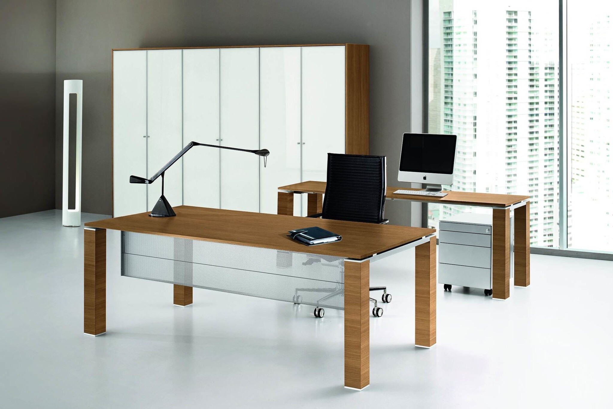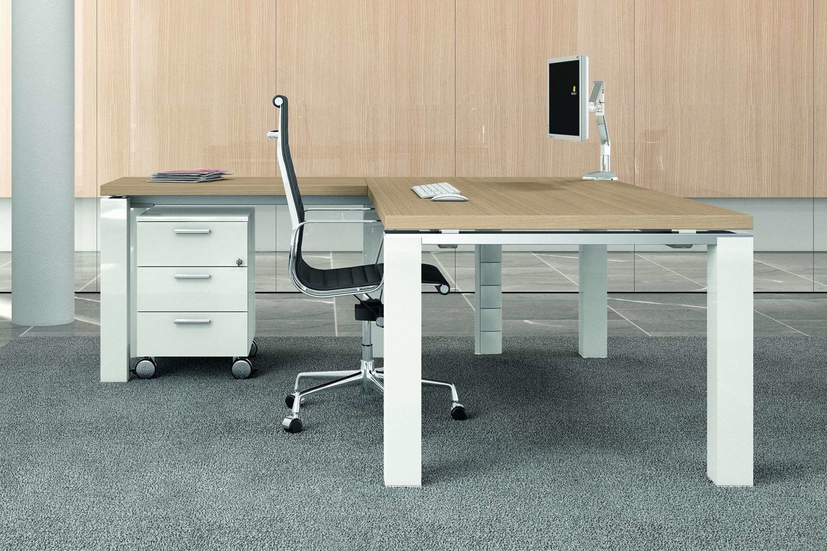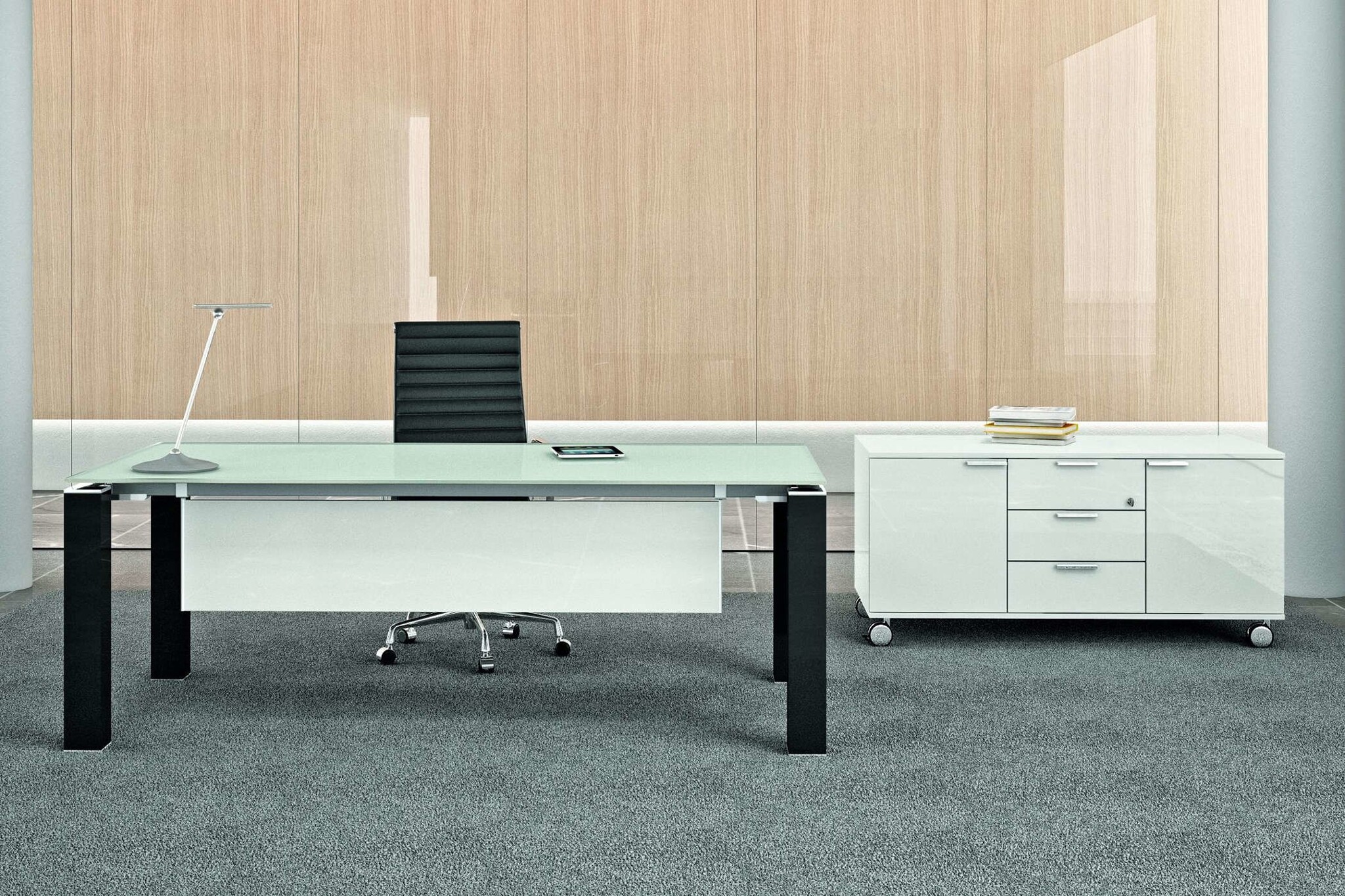 Bralco Jet - strenge vormen, zorg voor de details, aandacht voor design en prestigieuze afwerkingen maken van Bralco Jet een systeem dat toestaat directiemeubelruimtes samen te stellen, met werkvlakken, alleenstaande conversatietafels, verlengingen, ladekasten en opbergmeubels. Melamine bladen