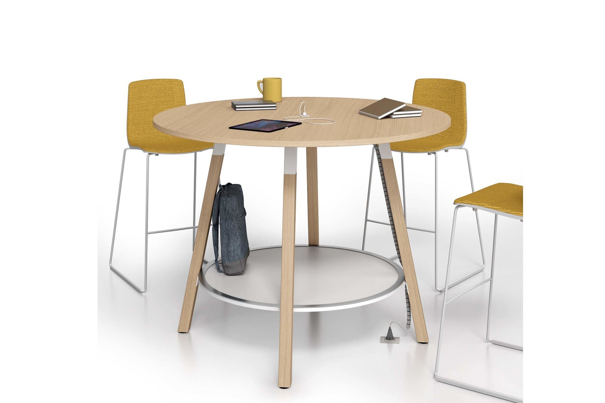 Optioneel kan er elektrificatie toegevoegd worden, zodat de medewerkers hun laptop of telefoon kunnen opladen en daardoor gedurende de dag kunnen studeren of werken.
