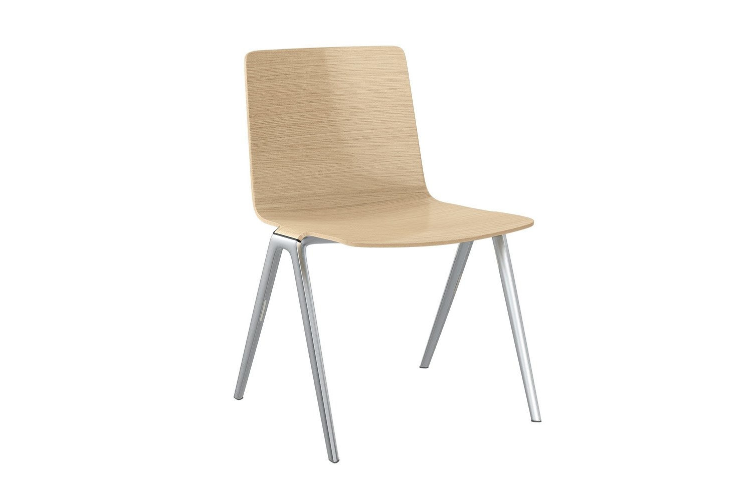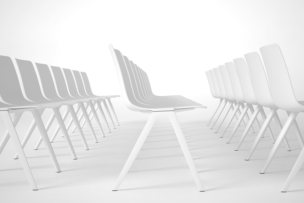 Elegant en uniek, dat zijn de wezenlijke kenmerken van het ontwerp van de A-Chair. Van de zijkant bekeken lijkt hij op de letter A, vandaar zijn naam. Essentieel onderdeel van het design zijn de slanke poten. In een rij lijken de poten twee aan twee samen te smelten, waardoor het totaalbeeld bijzonder rustig wordt. De A-Chair leidt niet af van zijn omgeving, zelfs niet als er 1000 stoelen in één ruimte staan. Dankzij het modulaire concept kunnen de kuipen en onderstellen van deze allrounder op diverse manieren worden gecombineerd; voor spannende contrasten of een harmonieuze eenheid. Het onderstel van gegoten aluminium of kunststof is te combineren met kuipen van verschillende materialen en in diverse kleuren. Nieuw en apart is bijvoorbeeld de combinatie van kunststofonderstel en gebogen houten kuip.