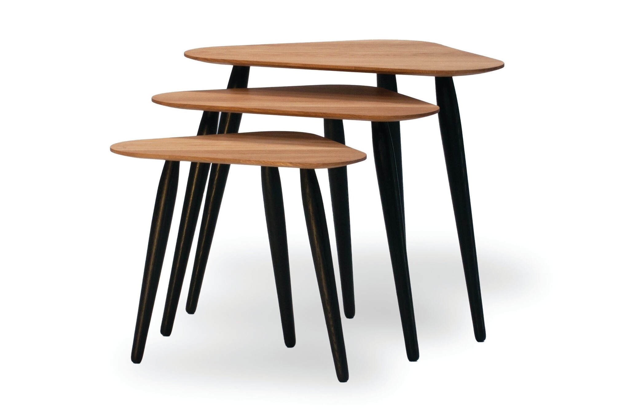 De PLAYorganic van Bruunmunch is een massief houten tafel en zijn verkrijgbaar in de volgende versies: Europees eikenhout in verschillende olie afwerkingen Amerikaans walnotenhout met een warme, donkere bruine kleur en Zwart gelakt gebeitst eiken. Hier is het nog steeds mogelijk om de houtstructuur te zien door het zwarte oppervlak. Al deze salontafels worden ook geproduceerd in laminaat. Ze hebben vijf aardse kleuren geselecteerd die goed gaan met de hedendaagse trends, Crystal white, Ocean Grey, Dusty Jade, Grotto en Storm Grey. Het kernmateriaal is MDF met gelijmde stroken van hout dat overeenkomt met houten poten van de tafel.