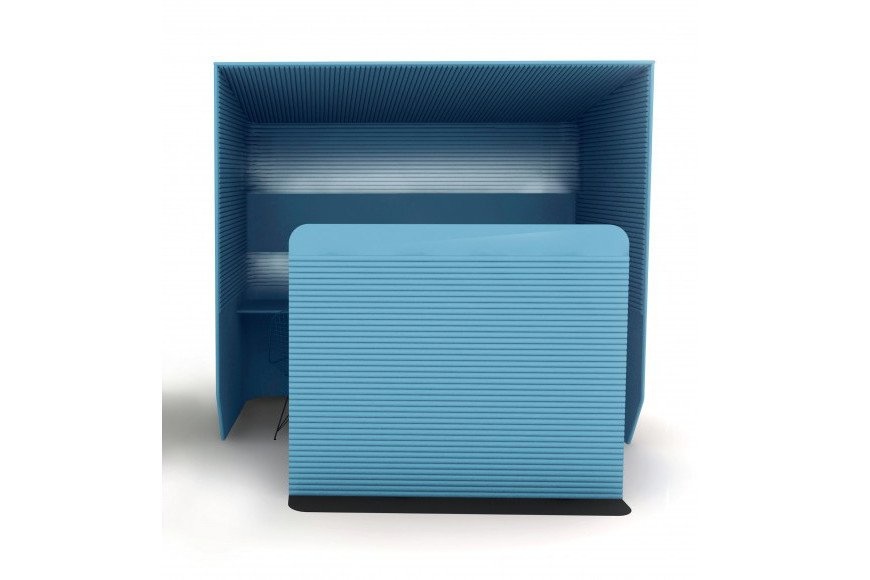 Deze akoestische telefoonstation is ontworpen met zachte randen en ronde vormen. Hiermee wordt geluid geleid en zorgt het ervoor dat de geluid zich beter verspreiden. Daarnaast zorgen de panelen die aan zijkant en boven geplaats zijn ervoor dat geluid de cabine niet kan verlaten. De telefooncel is voorzien van akoestische schuim, bekleed met stof welke tevens ook geluidsgolven opneemt.