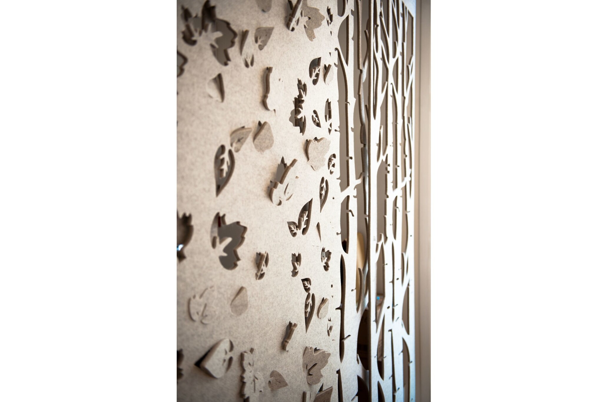 BuzziSpace BuzziFalls zijn de akoestische oplossing voor in grote kantoorruimten. De BuzziFalls zijn geluiddempende panelen die zorgen voor een aangename demping van harde geluiden. De panelen zijn verkrijgbaar in een breed scala van cut-out patronen. Wat dacht je van een paneel met taferelen uit de natuur, of vallende bladeren? Andere patronen maken een verwijzing naar kunst, architectuur en stedelijke skylines. Deze functionele panelen zijn bedoelt om te worden gebruikt als scheidingswand, voor aan de muur waar ze zorgen voor een fraaie sfeer. Daarnaast zijn de BuzziSpace BuzziFalls panelen ideaal voor in bijvoorbeeld kantoortuinen of open kantoren om lawaai te dempen.