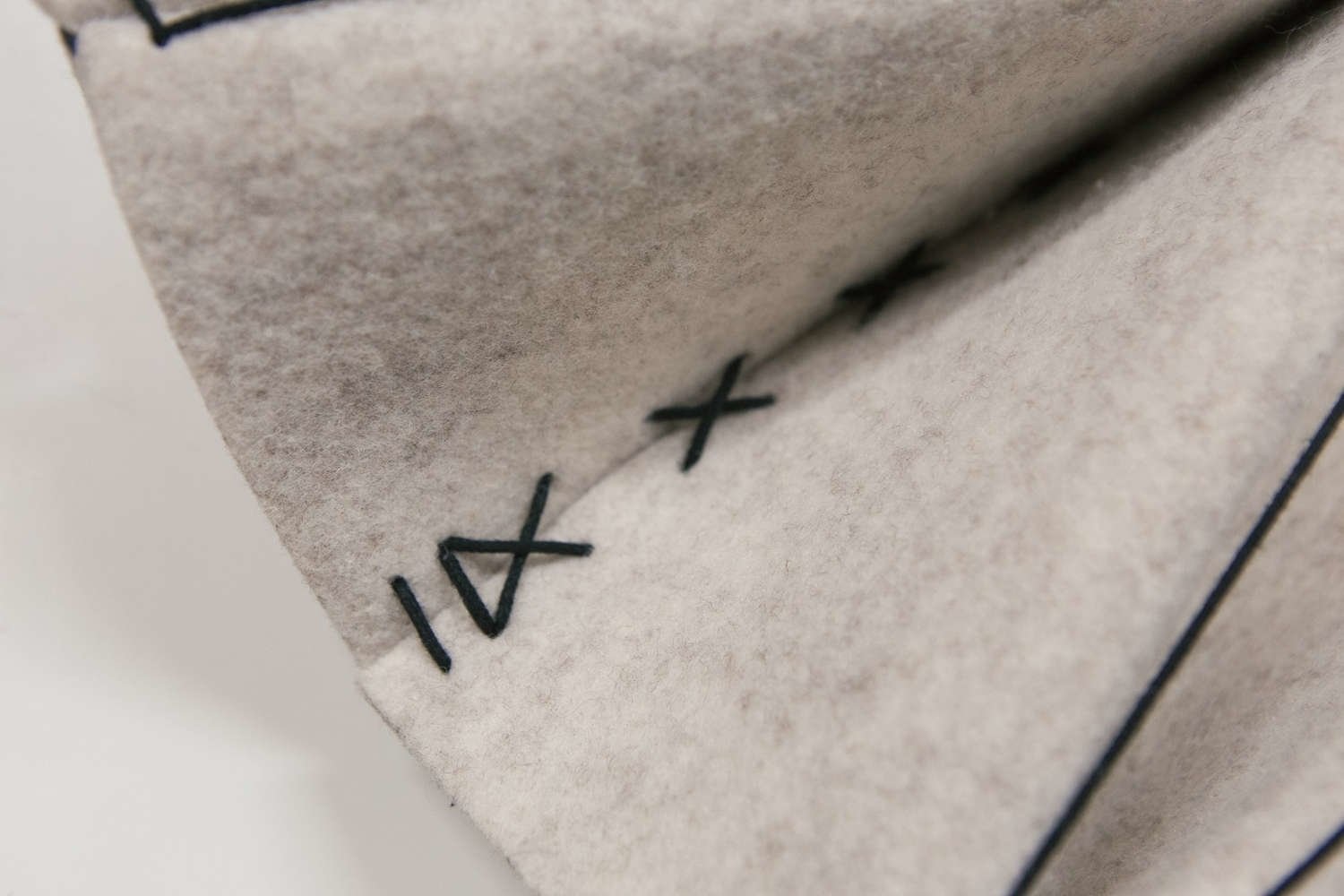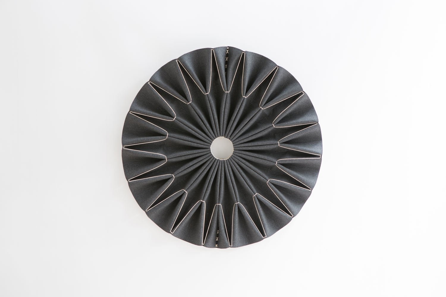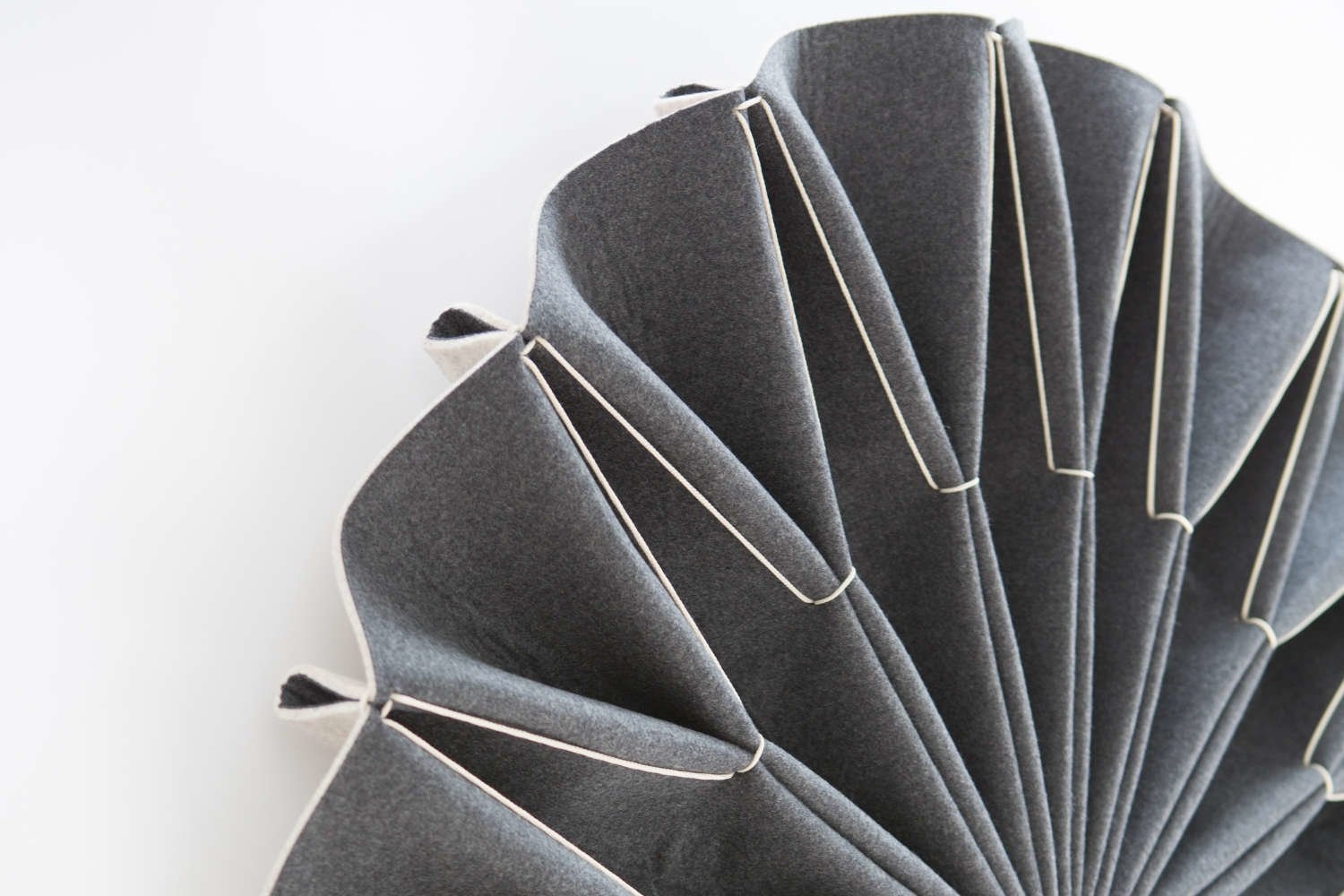 Plooi gemaakt van BuzziFelt (akoestische materiaal) in de kleuren: OffWhite, StoneGrey, Lime of Antraciet. Kant in naturel of zwart.