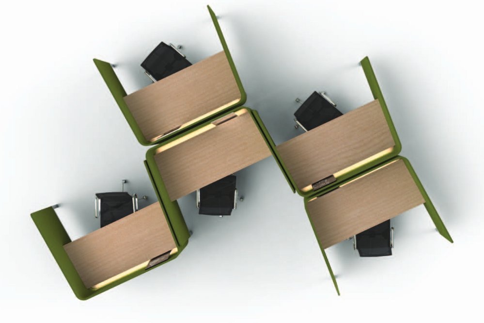 Het BuzziTemp werkstation zorgt voor maximale absorptie, diffusie en demping van geluid.