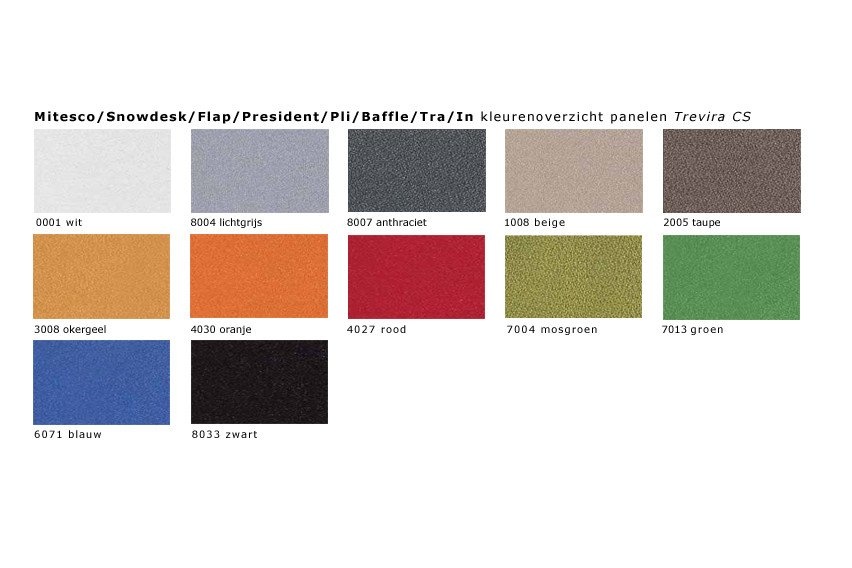 Kleuren en afmetingen van de Caimi Baffle panelen