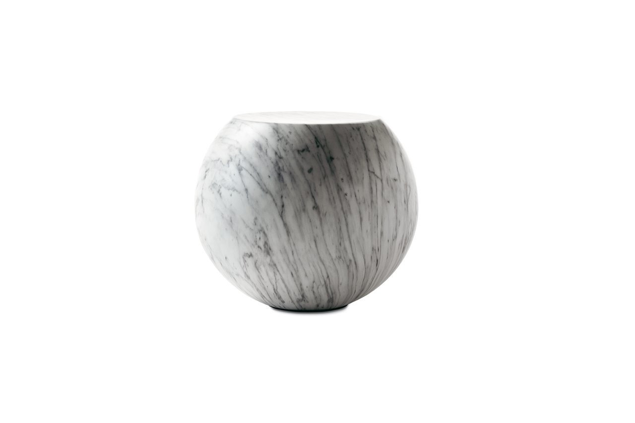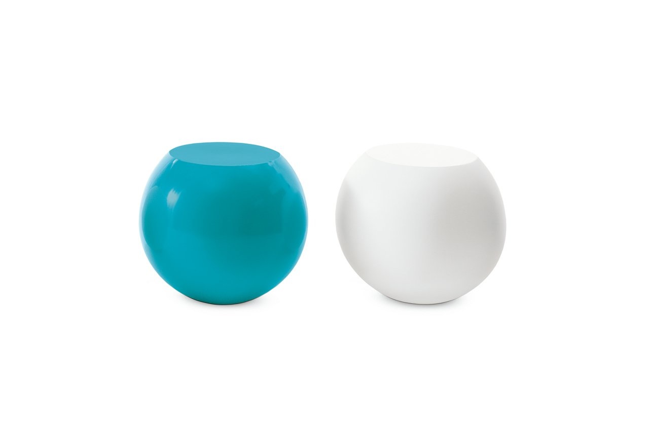 Cappellini Bong, een salontafel gemaakt van glasvezel, met matte afwerking gelakt in wit, antraciet, rood, oranje, turquoise of zon geel. De Cappellini Bong salontafel | bijzettafel is ook verkrijgbaar in wit marmer met een driedimensionale faux finisch. Ontworpen door Giulio Cappellini.