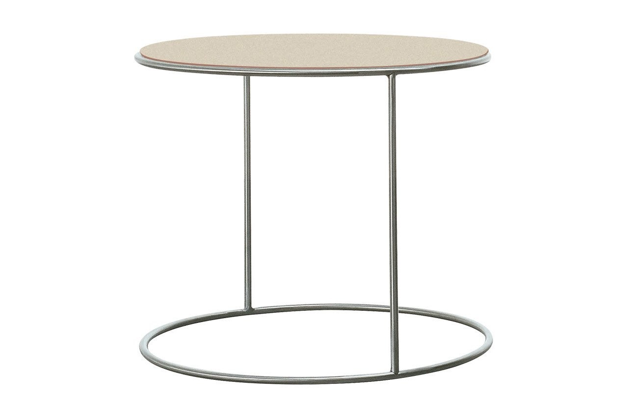 Cappellini Cannot, salontafel met een roestvrijstalen basis. De tafel heeft een afneembaar blad verkrijgbaar in de kleuren uit de collectie of natuurlijk hout.