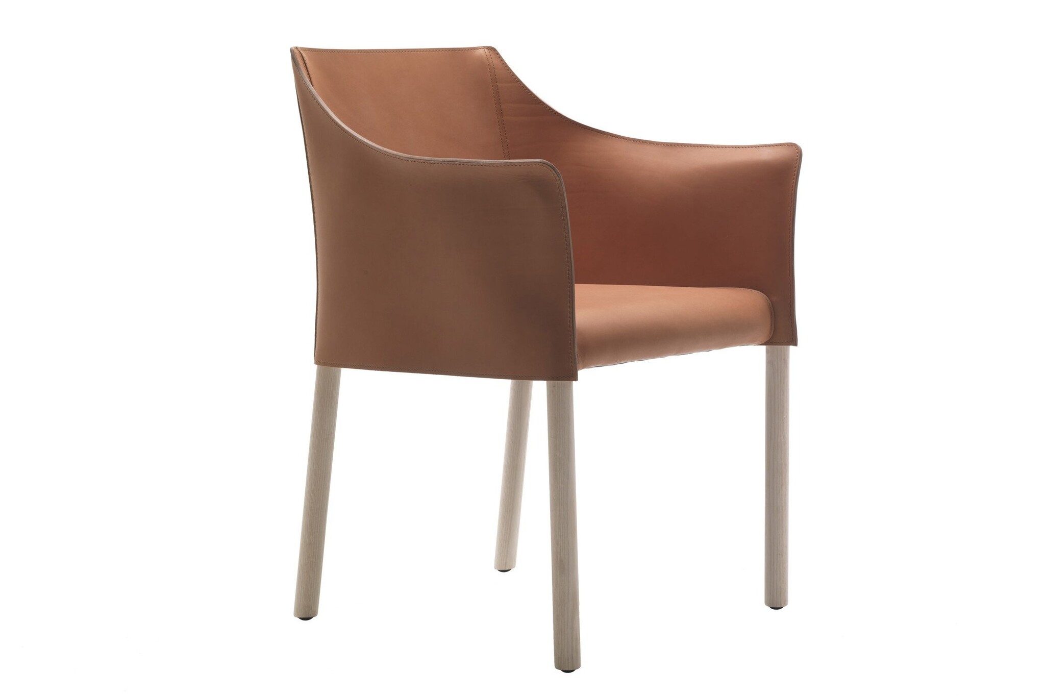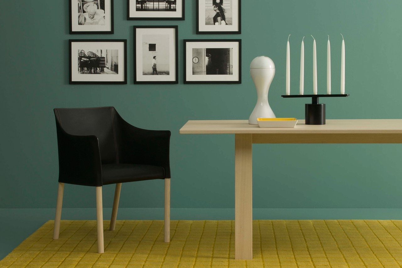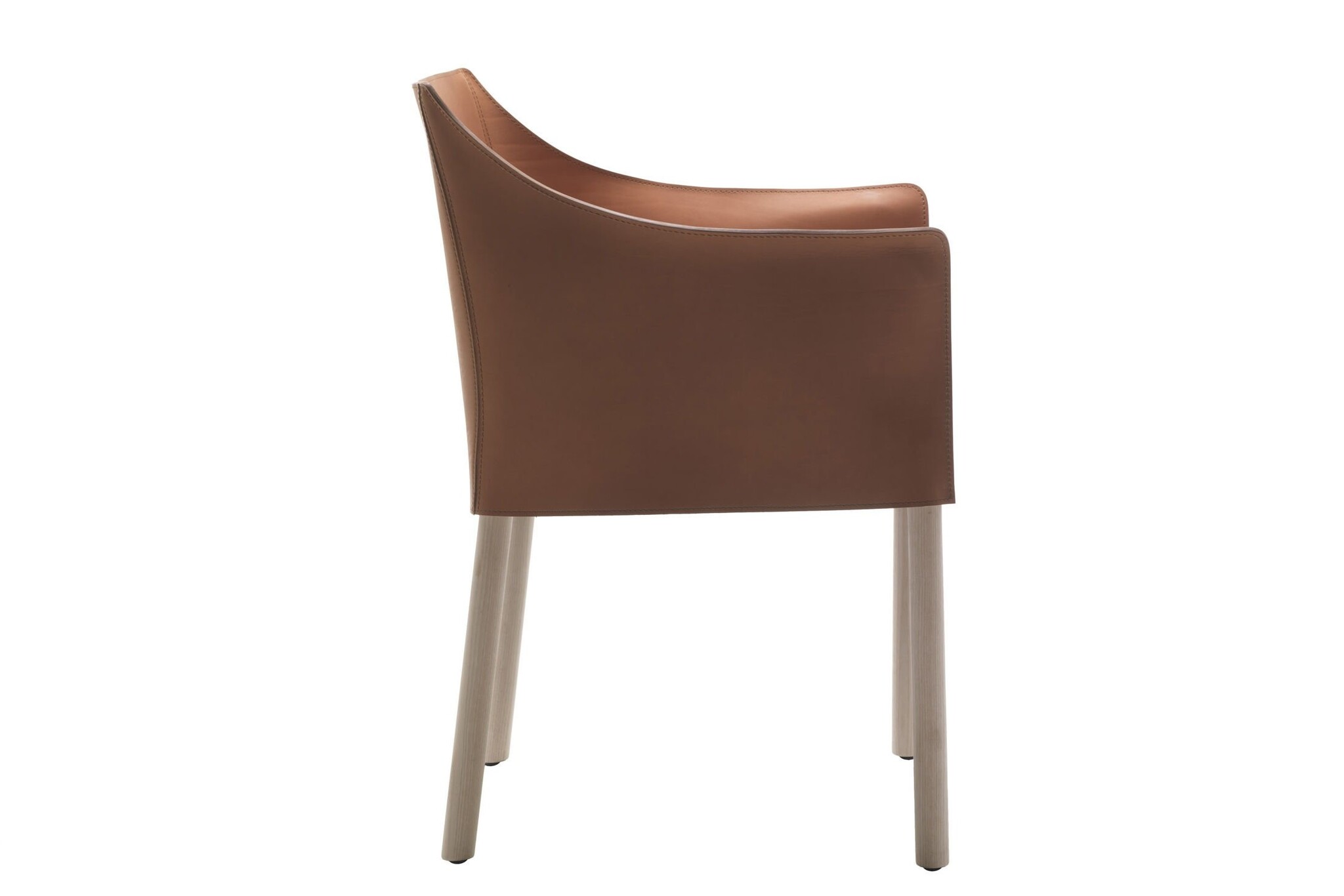 Cappellini Cap Chair, een lederen stoel met poten van massief essenhout, gebeitst walnoot of wengé. Een product dat het Cappellini aanbod verreikt op een eenvoudige manier. De eenvoud van de materialen en lijnen maakt de stoer eigentijds en tegelijkertijd ook tijdloos. De zitting is beschikbaar in leer, stof of gepigmenteerd.