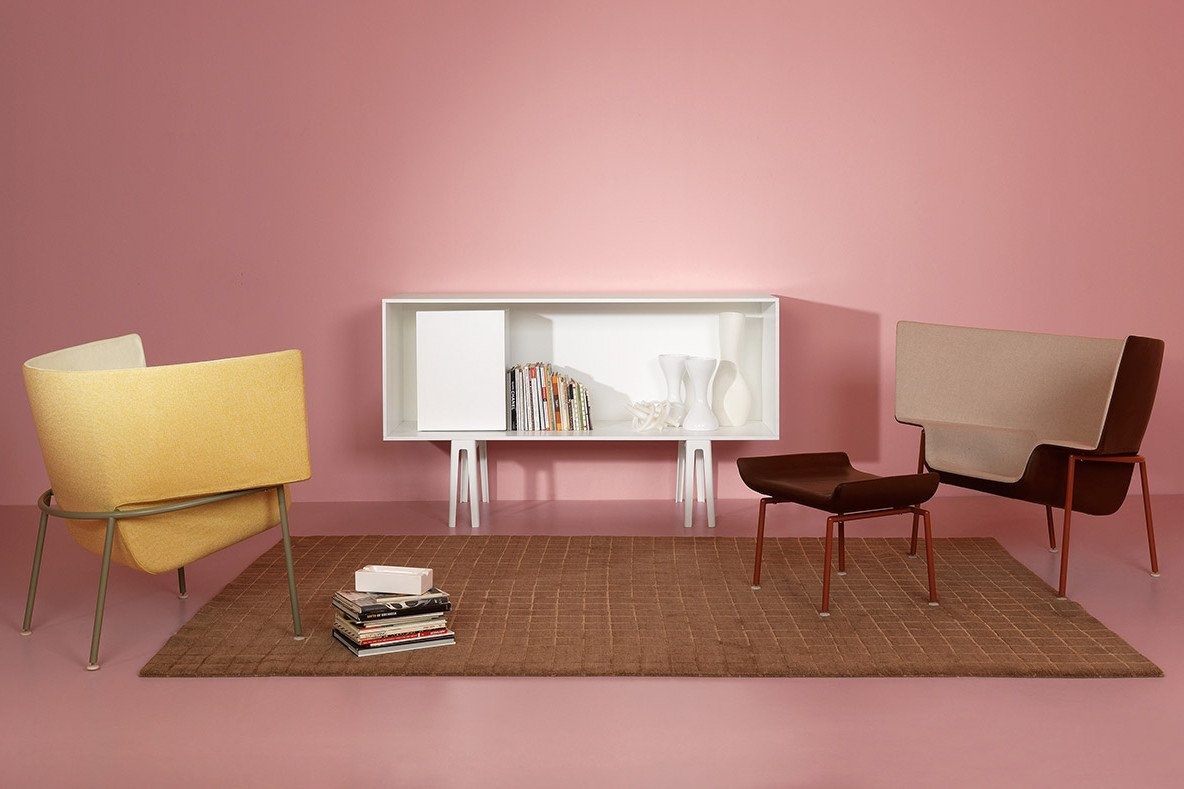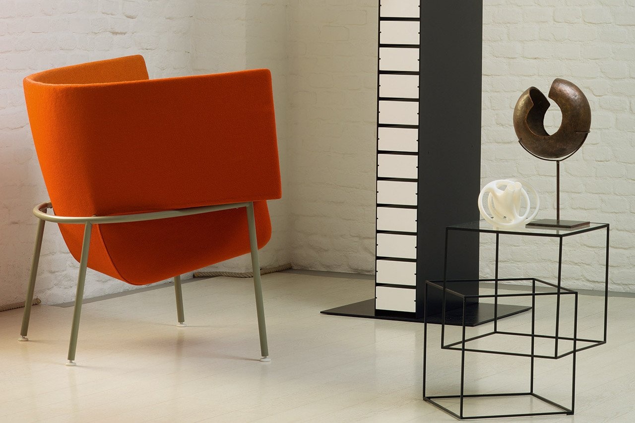 Cappellini Capo, een fauteuil met een slanke, maar toch een omhullende vorm. De vorm en materialen zijn geïnspireerd uit het beeld van een keurige heer in een goed pak met nette, vilten hoed. De Capo van Cappellini is verkrijgbaar in leer, kunstleer en vilt. Er zijn verschillende combinaties mogelijk qua stoffering. De metalen basis is verkrijgbaar in grijs, blauw en terracotta.