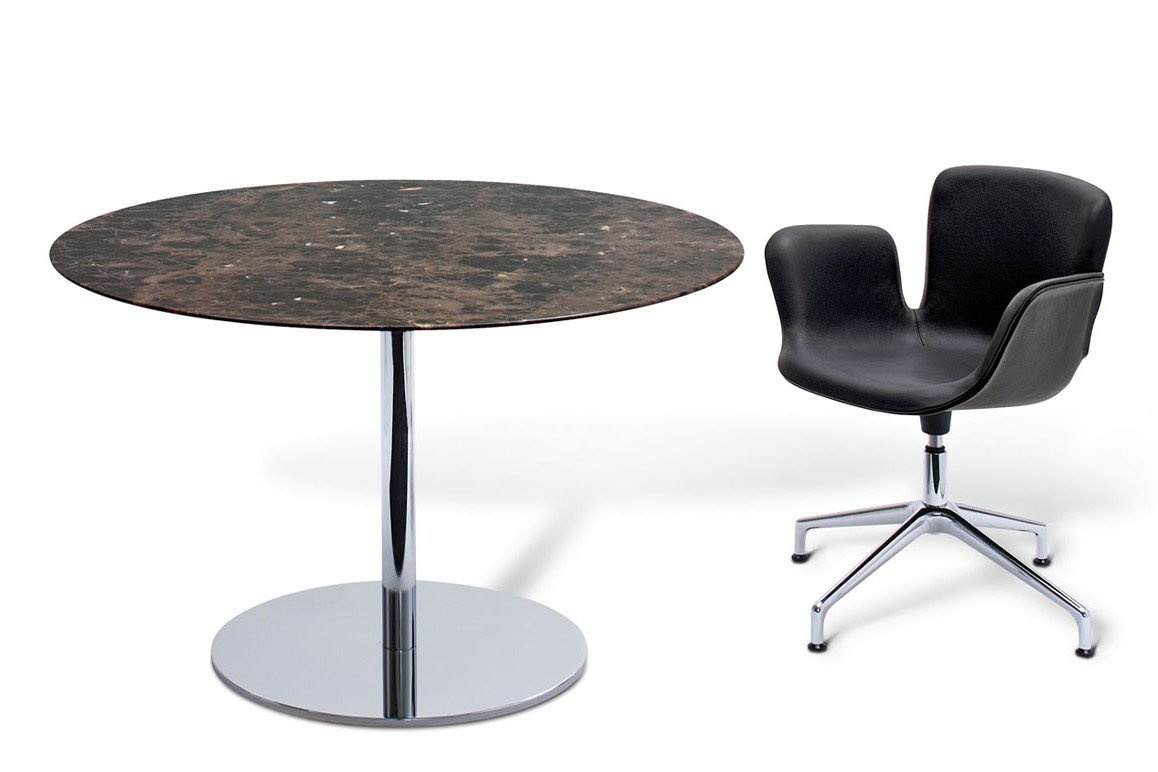 Draaifauteuil met verstelbare hoogte in gegoten integraal polyurethaanschuim (gips wit, donker grijs, zand, Marlboro rood kleuren) of bekleed met stof, leder, extra en super leder. Basis in polish verchroomd gietaluminium. Over Cappellini Cappellini design meubilair komt van een Italiaanse fabrikant en heeft een eigentijds design. Het design meubilair van Cappellini varieert van kantoormeubelen tot zitmeubelen en van fauteuils tot accessoires. De design meubelen van Cappellini zijn nooit saai of absurd, maar levendig en vol creativiteit.