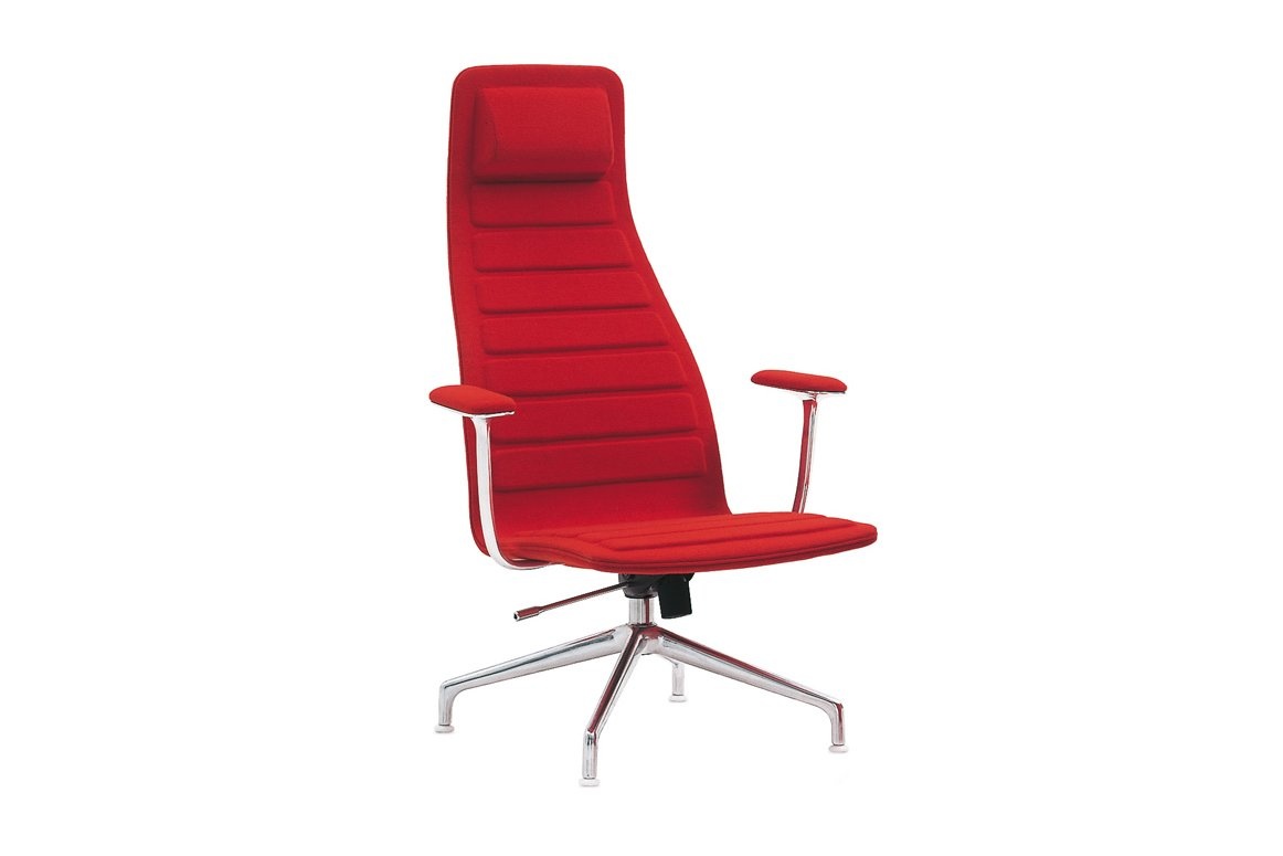 De fauteuil beschikt over een hoge rug met een kruisvoet als onderstel. De fauteuil kan kantelen en draaien en is beschikbaar met of zonder armleuningen. Bovendien kunt u kiezen uit de stoffen of leder collectie. Deze collectie bestaat tevens uit vele kleuren. Zo heeft u een ruime keuze uit kleuren en kunt u de stoel helemaal afstemmen op de kleur van uw interieur.