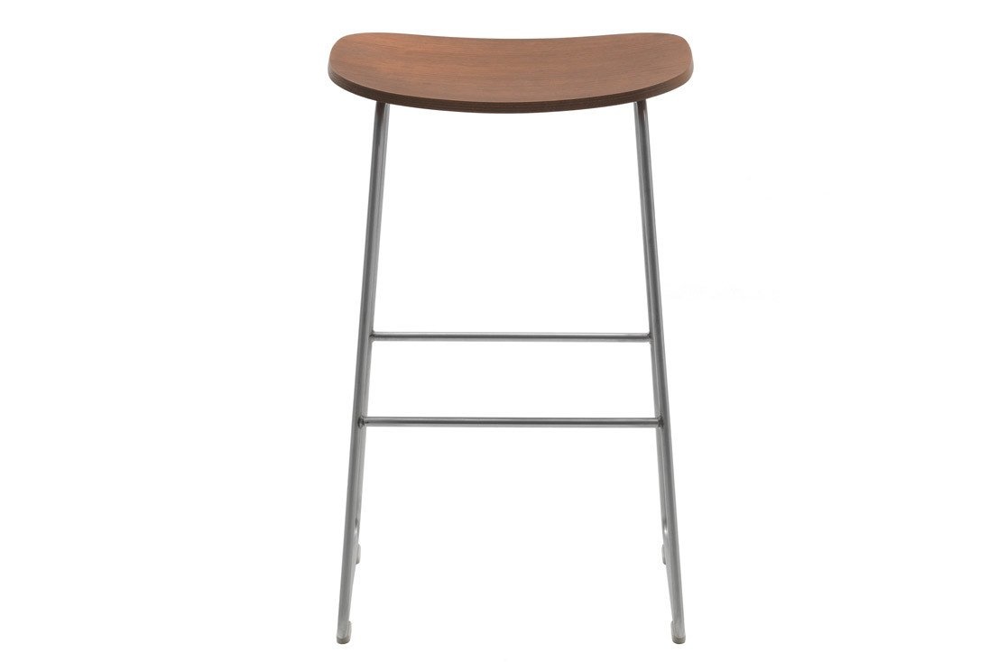 Cappellini Morrison, een collectie krukken in drie verschillende hoogtes. De zetes is gemaakt van gebleekt essen, walnoot of wengé. Ook kan er gekozen worden voor een bekleding met polyurethaanschuim met vaste hoes van stof of leder uit de collectie. De basis is gemaakt van geborsteld roesvrij staal en de kruk bevat polypropyleen voeten.