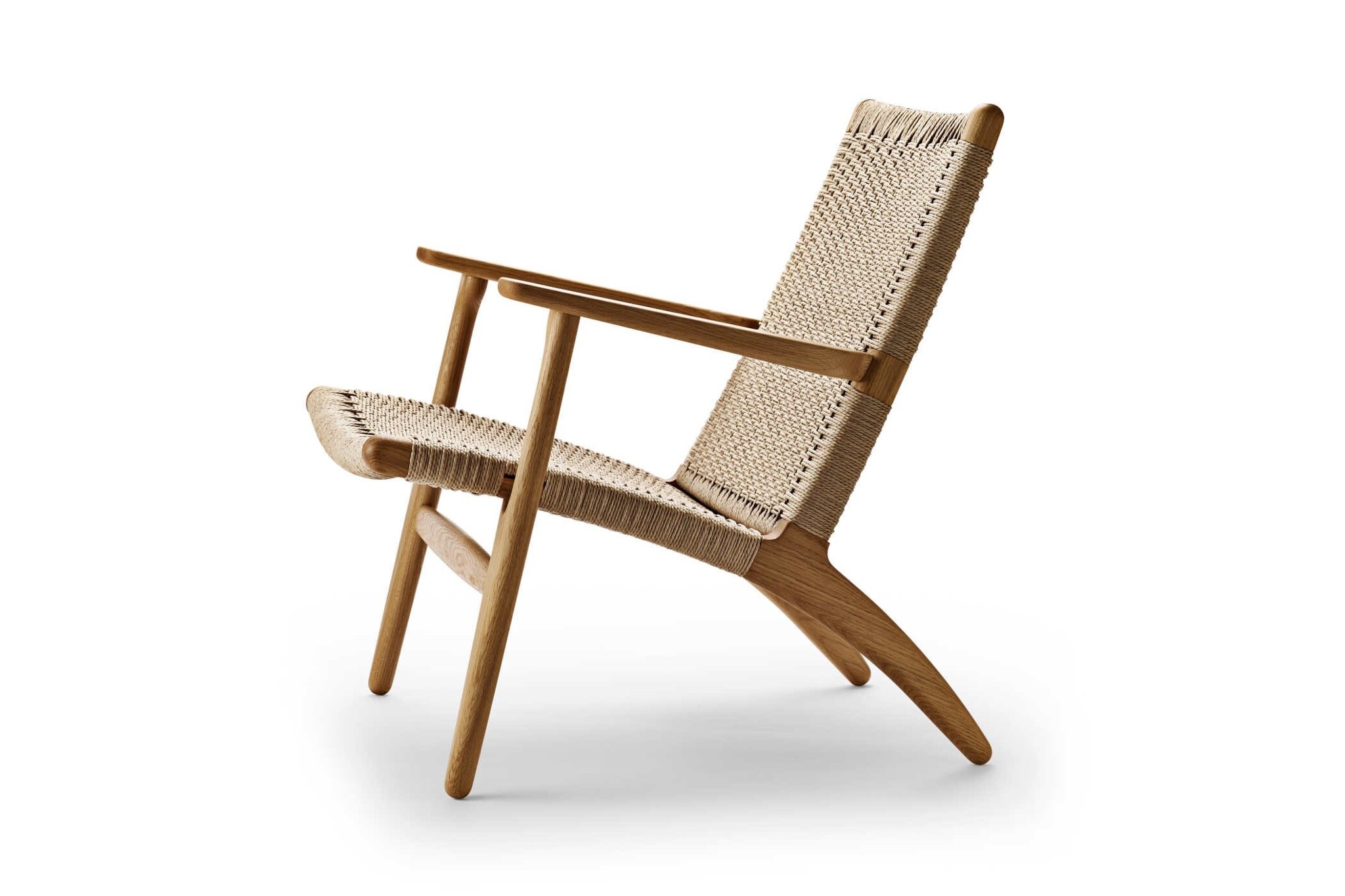 De Carl Hansen & Son CH25 fauteuil heeft een aparte gewoven structuur in de rugleuning en zitschaal. Hier zit dan ook geen stretch in, waardoor het zitmeubel duurzaam is en generaties lang mee kan gaan. Het kost een vakman ongeveer 10 uur om deze structuur met de hand te weven.