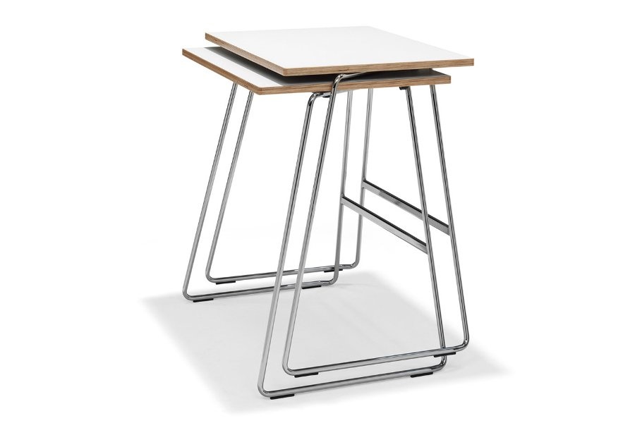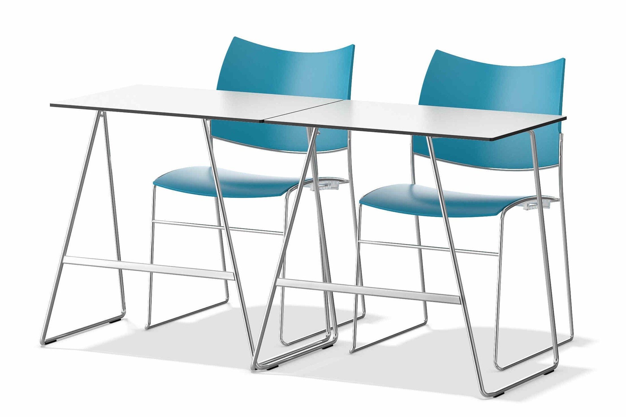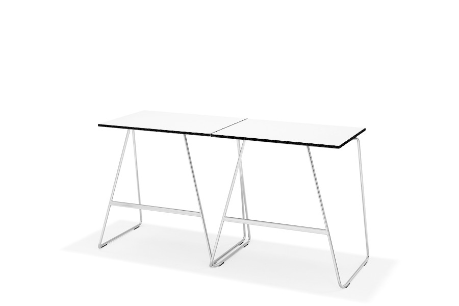 De tafels zijn aan elkaar te koppelen met een koppeling die standaard geïntegreerd is in het frame van de tafel.