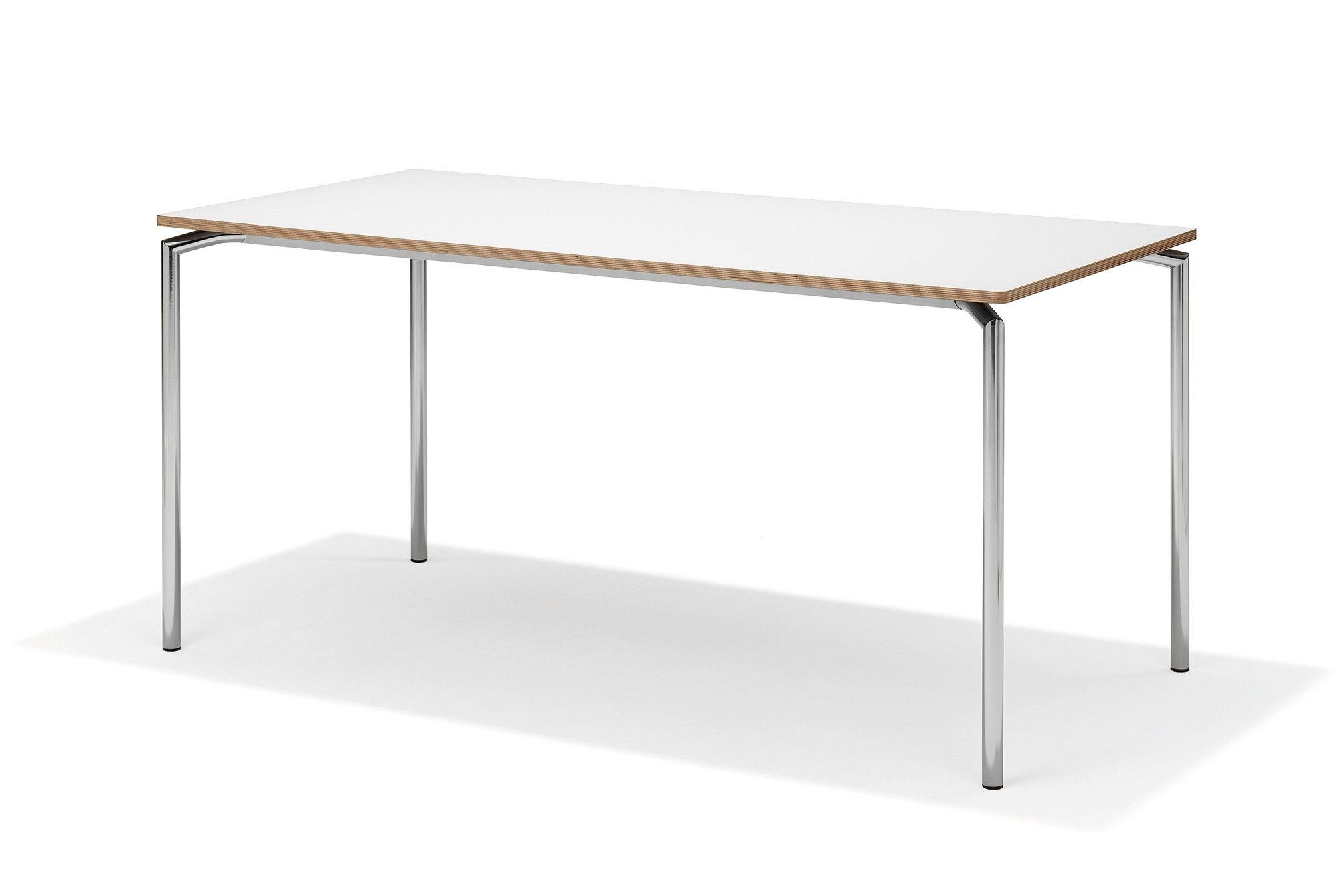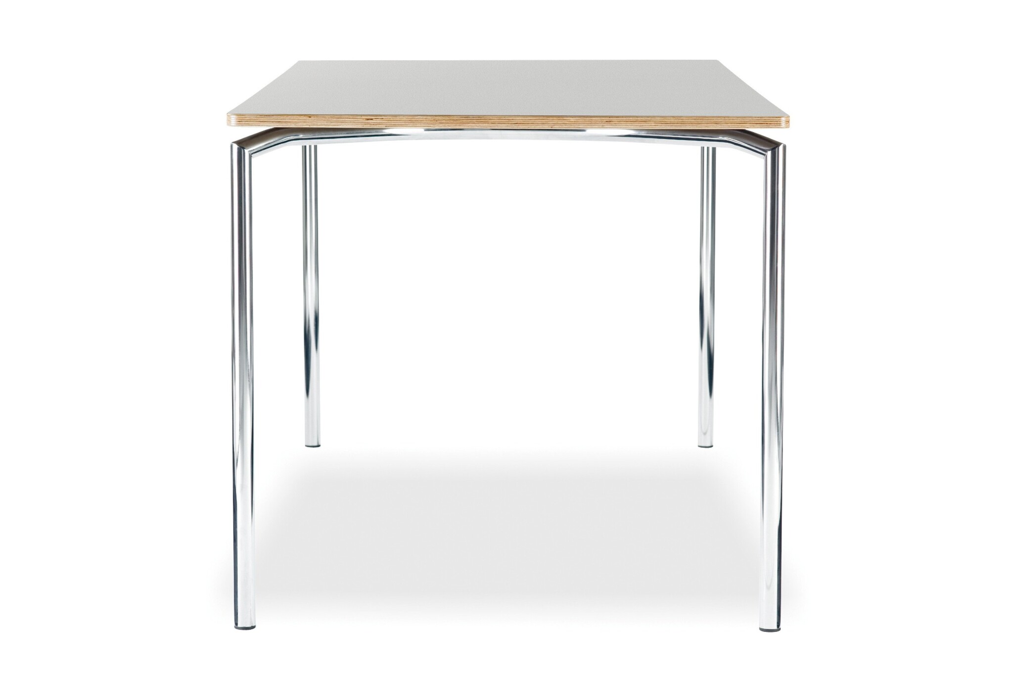 De tafel is te leveren met een vierkante of rechthoekige tafelbladen. Variërend van 70 x 70 cm tot 180 x 90 cm. De hoogte van de tafel is 75 cm en de frame buis heeft een diameter van 32 mm.