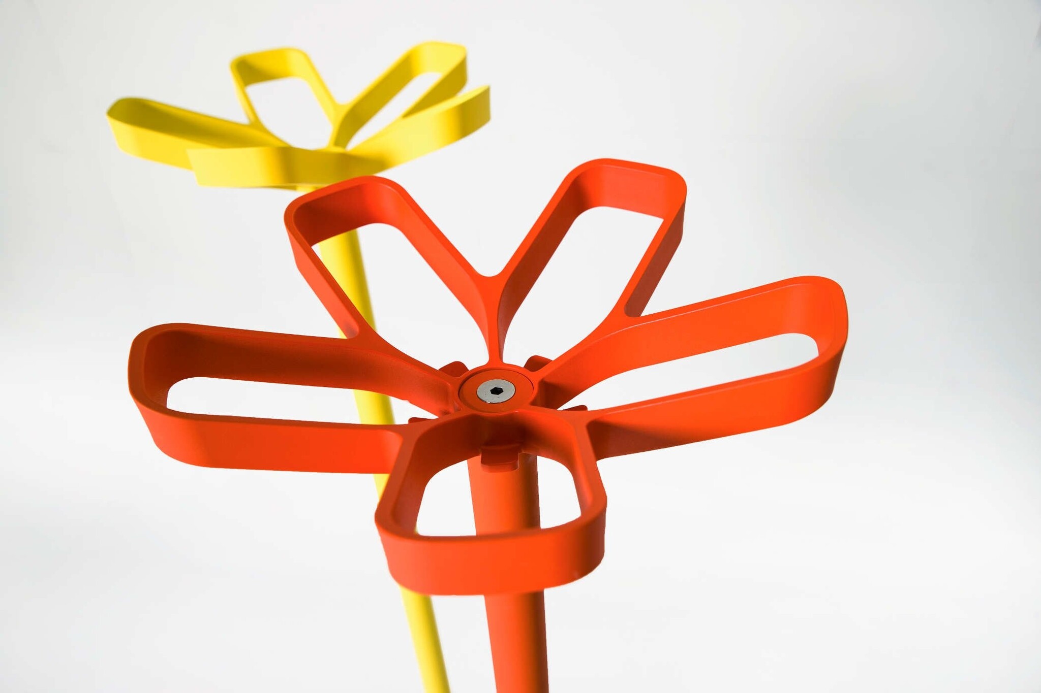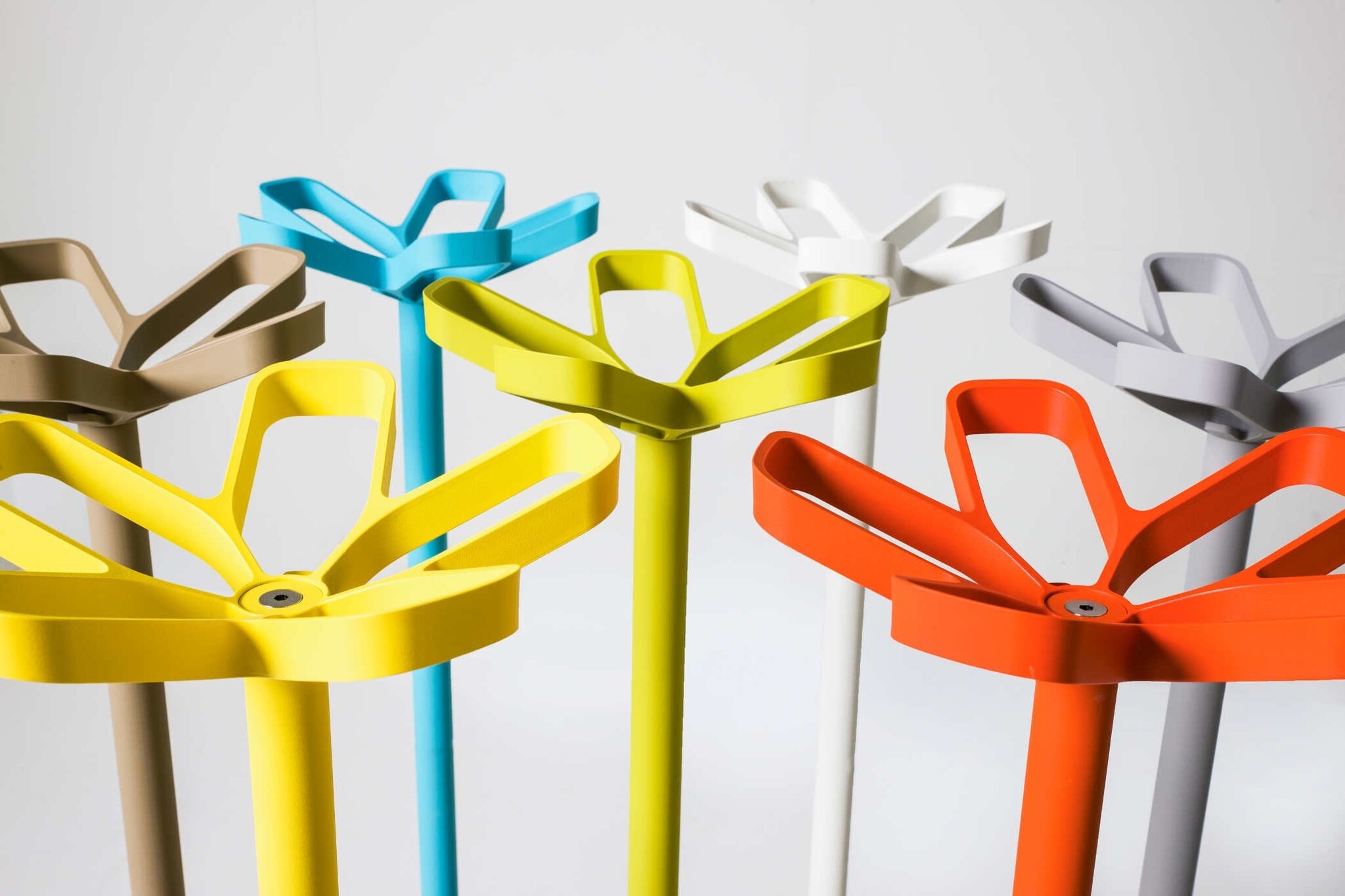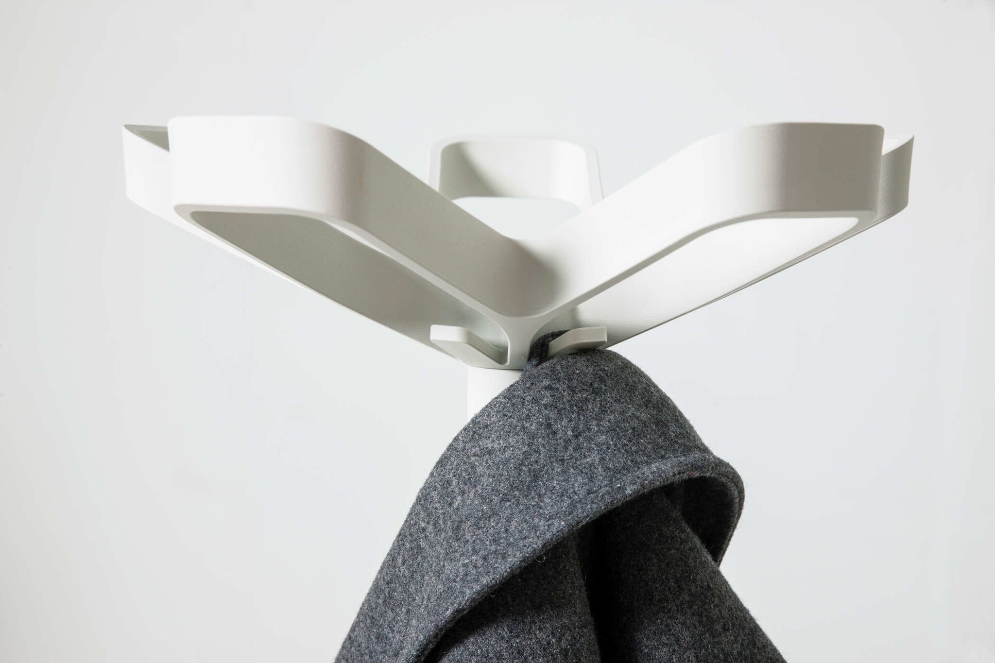 Model Flower kapstok vraagt met zijn kroon direct de aandacht. De kapstok is vrijstaand en biedt plaats aan minimaal tien jassen door middel van vijf grote en vijf kleine jashaken. De kroon is gemaakt van kunststof, de buis van staal en de voetplaat van gietijzer. Winnaar van de Interior Innovation Award in 2015.