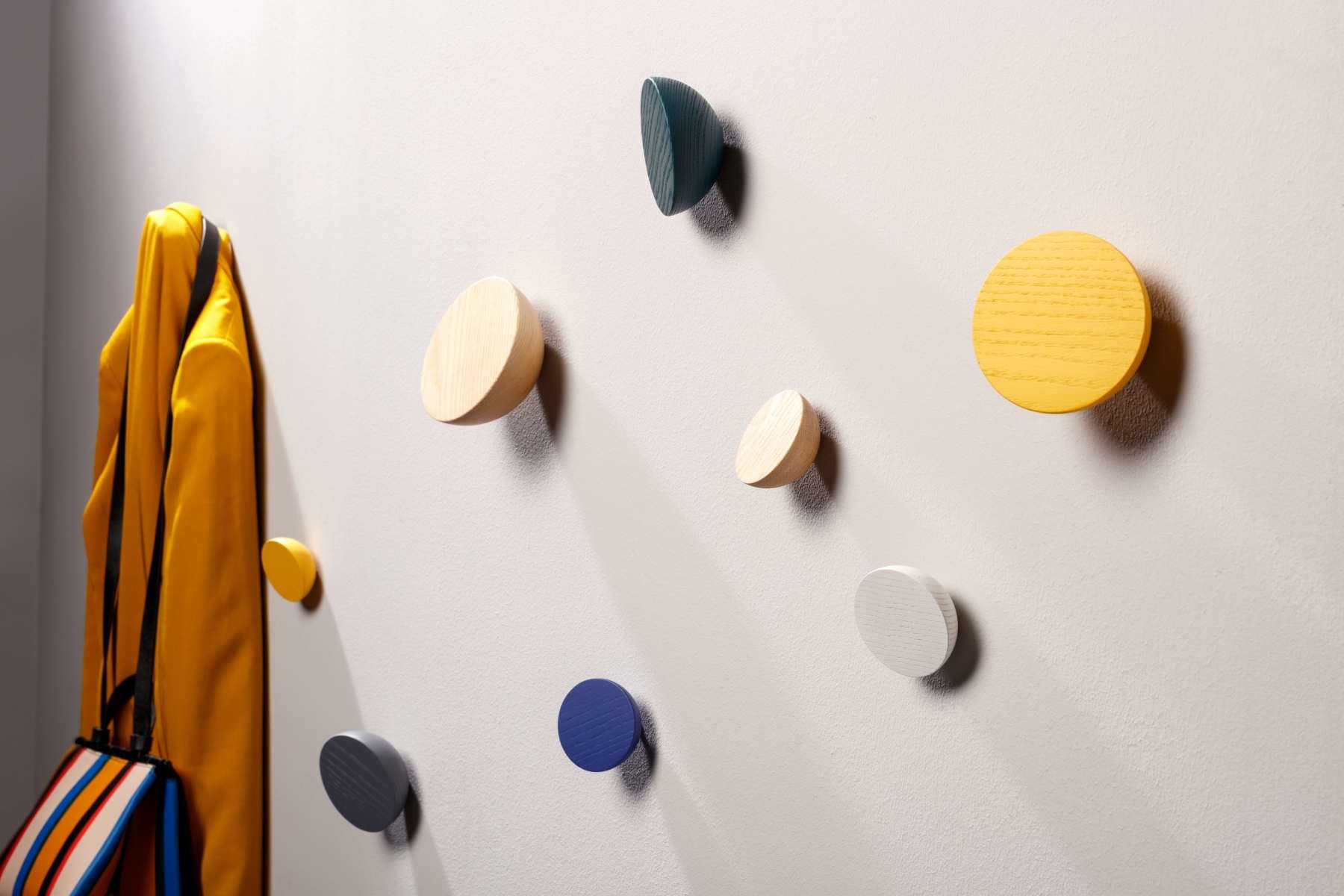 De Hemisphere heeft een eigenwijze en aparte bewegingshoek, waardoor de elementen in elke richting geplaatst kunnen worden. Uw muur komt tot leven door de speelse indeling die te realiseren is met Heminsphere. Het is gemaakt van essenhout en is verkrijgbaar in drie maten en 8 kleuren. Leverbaar per stuk of als set van 5.